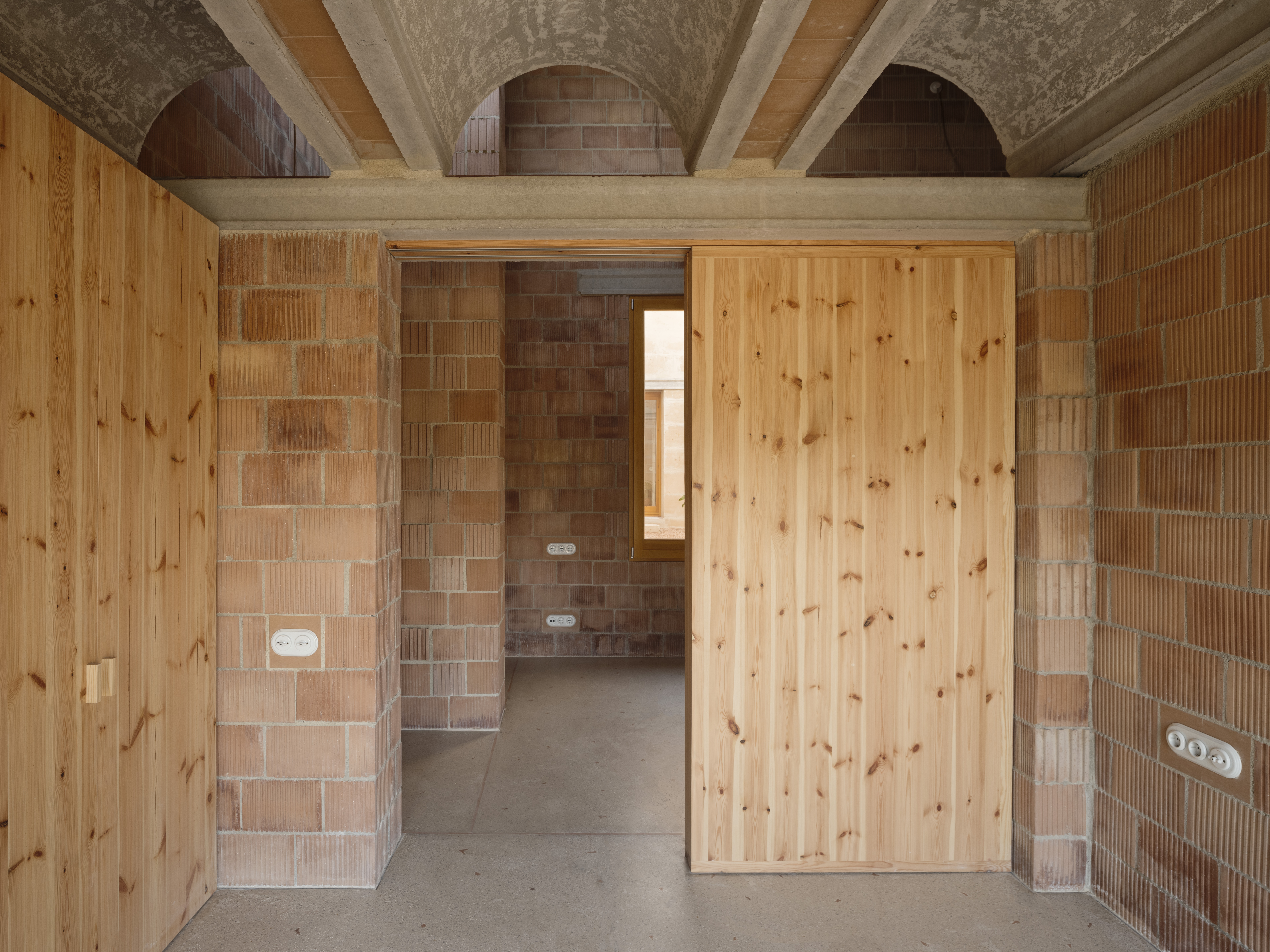 Este sistema se complementa con unas pequeñas bóvedas que se apoyan sobre los muros cerámicos. Son bóvedas de poca luz, pero muy pesadas, mejorando, si cabe, la inercia térmica del sistema constructivo.