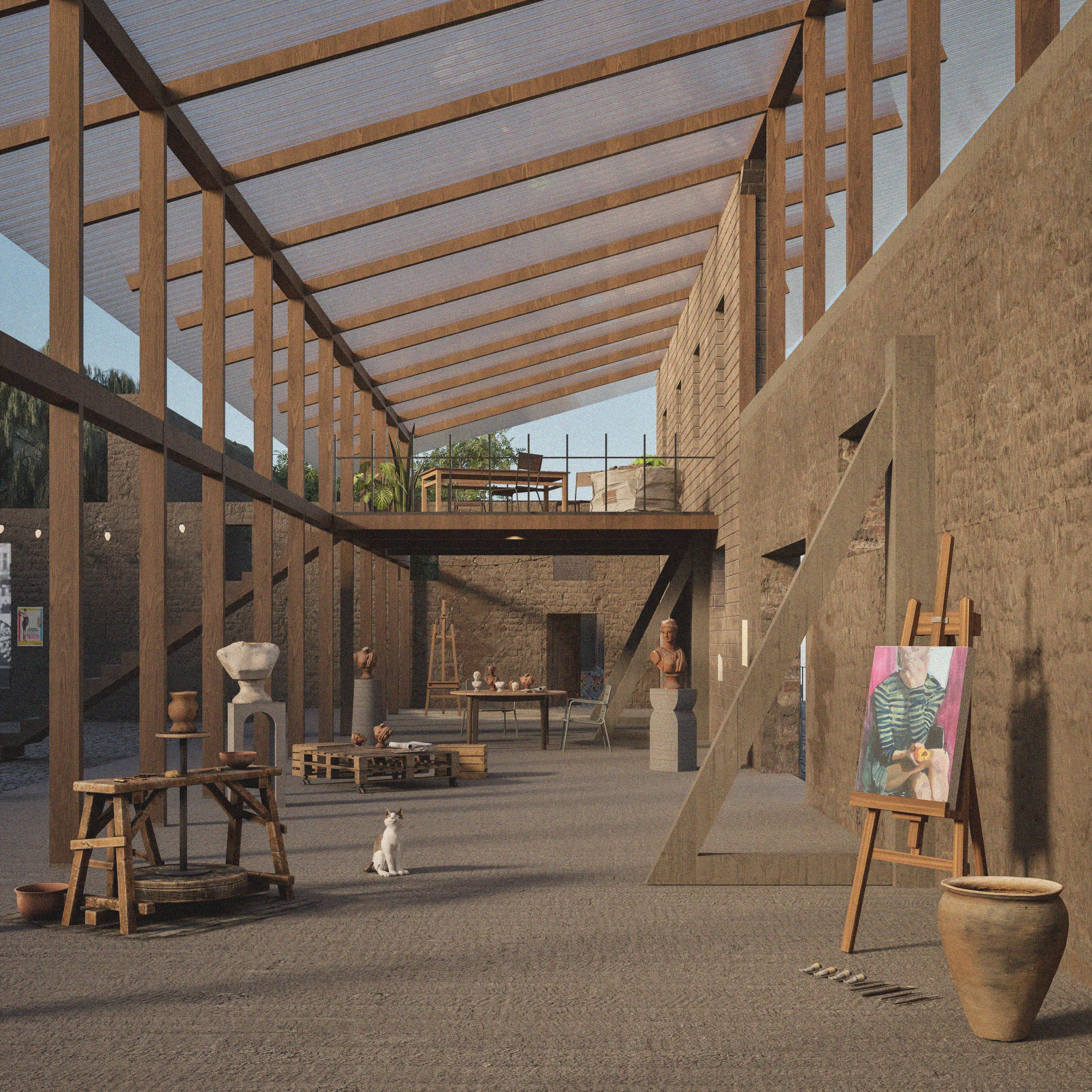 The Breathing Wall becomes the spine of a dispersed artistic centre, an open-air laboratory of culture and experimentation. Rooted in memory and sustained by the transformative power of reuse, the project embraces what exists: old industrial buildings, vestiges of past activity, whose structural traces still pulse with possibility.
