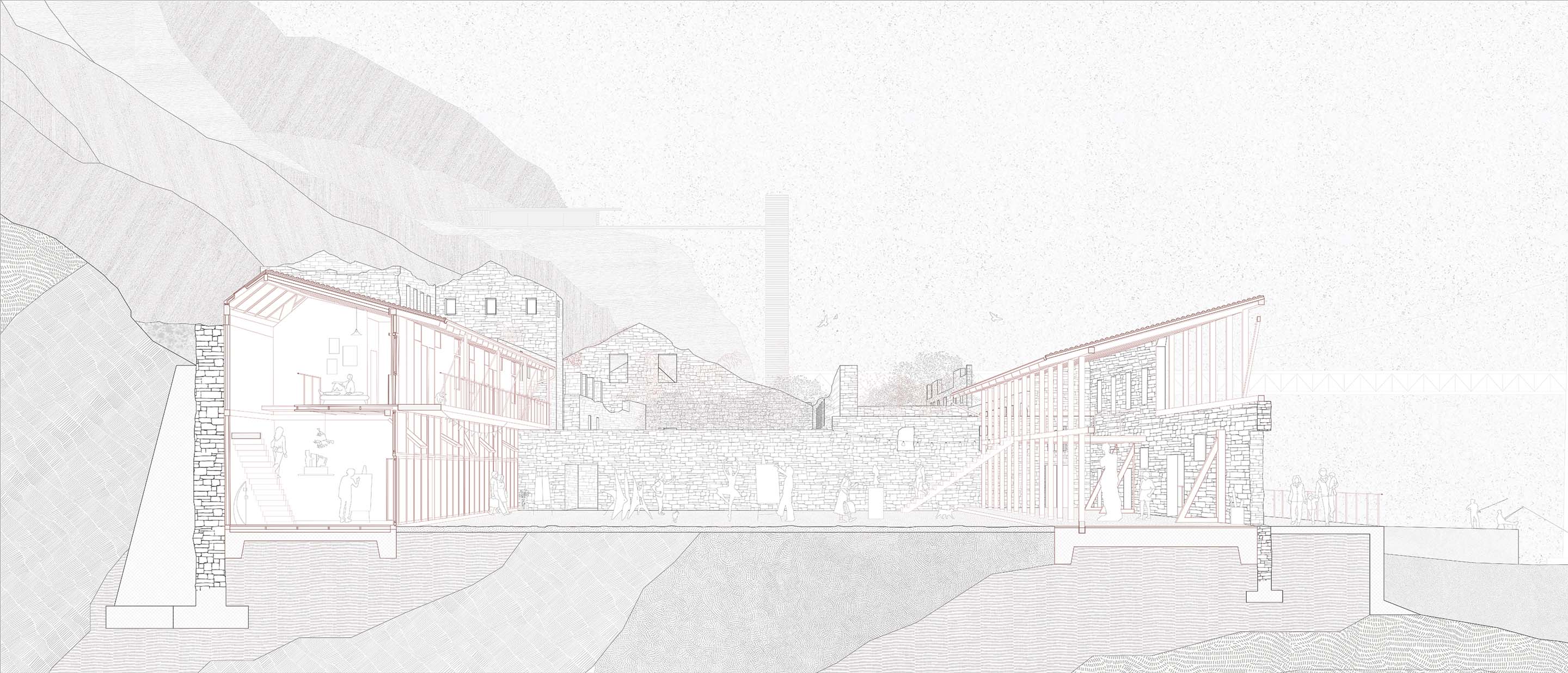 They have been carefully restored, reinforced, and given new roofs, expressive structures that hover above the old, creating a dialogue between past and present.