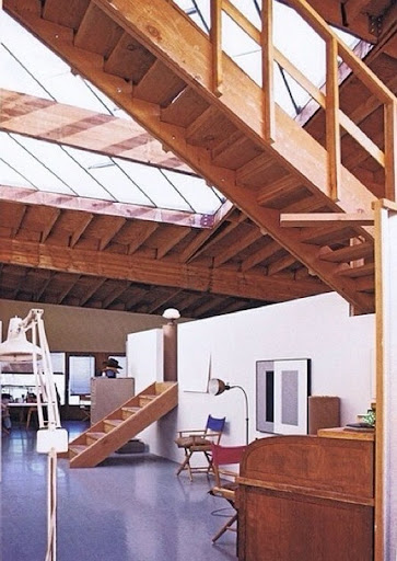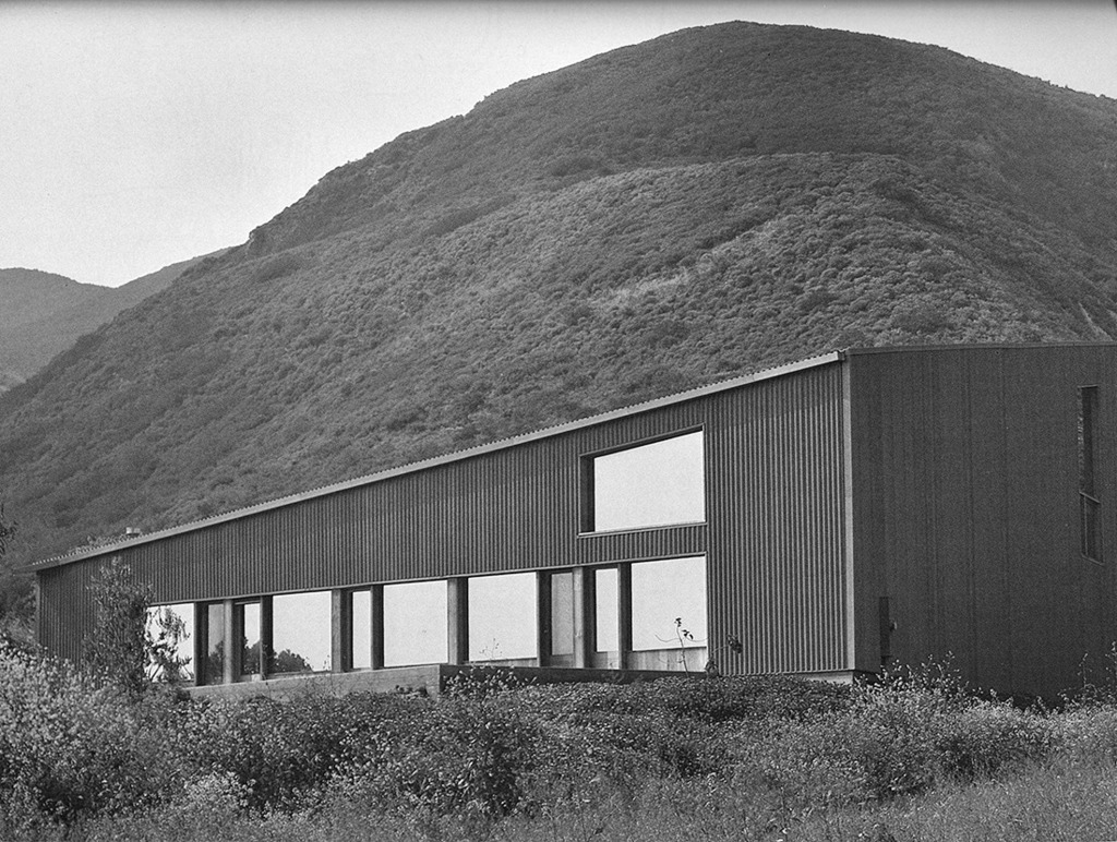 The building was ultimately conceived simply as a container for movable things, a singular, barnlike structure that would sit on the landscape and confront the terrain in an uncompromising way. Inside, space would be adaptable to the artist’s life and work. In the end, a trapezoidal shell with a strong sculptural relationship to the earth and flexible spatial organization inside incorporated both studio and living quarters.