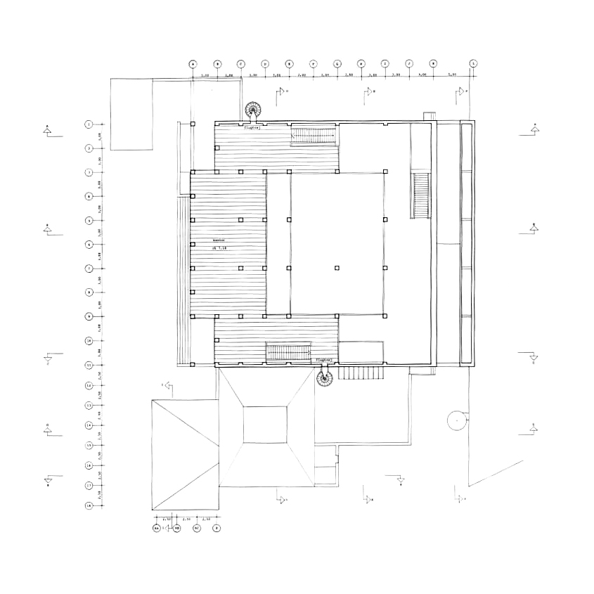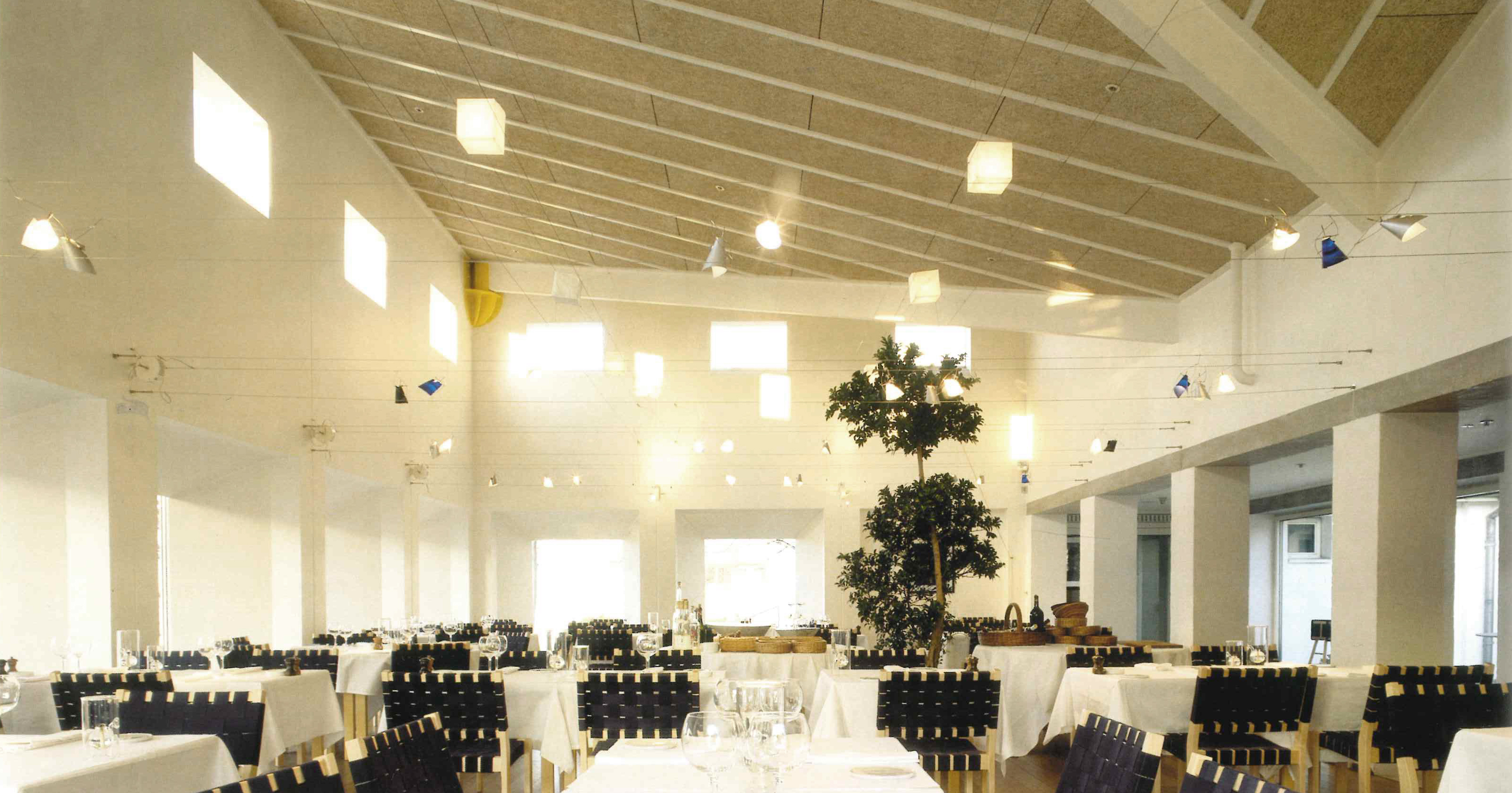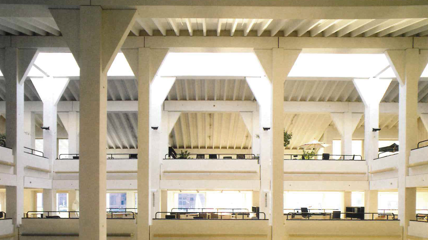 Jørn Utzon drew inspiration for the Paustian House from his experiences walking through a Danish beech trees. In his own words: “Walking in a Danish beech forest is like going through a hall of pillars. This hall of pillars dissolves into branches and into a leafy crown represented by the roof.” The result is a three-story structure that evokes the feeling of being within a forest, with a light and airy interior and expansive exhibition spaces. Externally, the building is characterized by its temple-like appearance, with external pillars that frame the structure along the harbor’s edge.