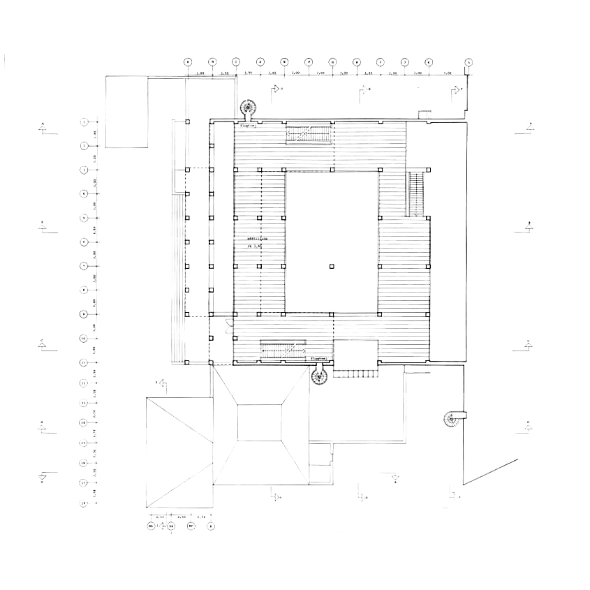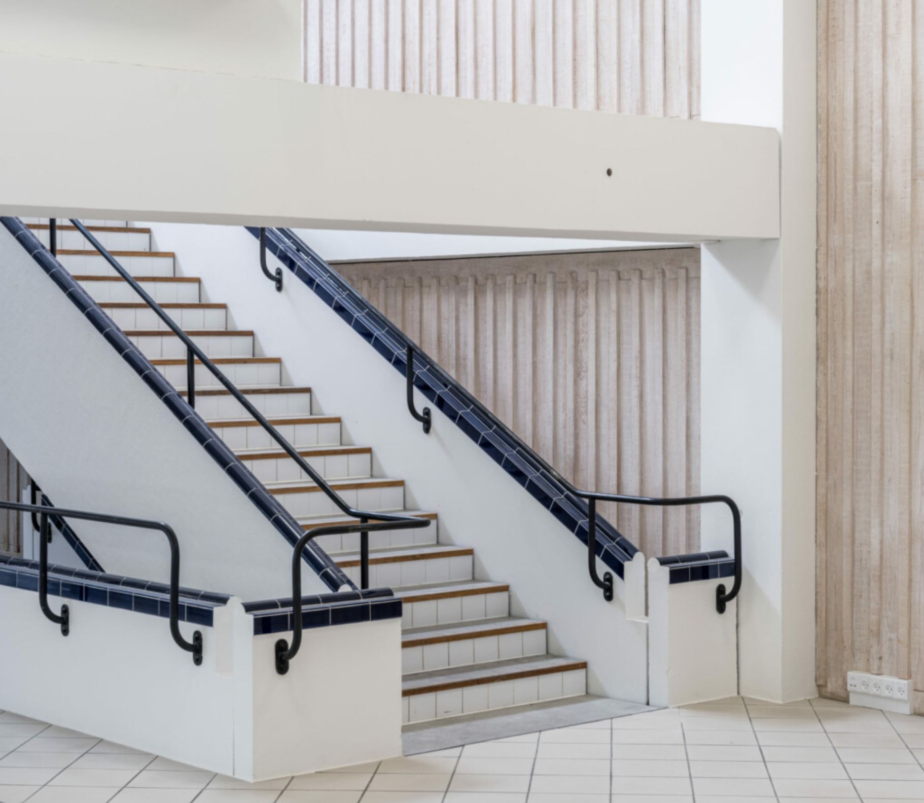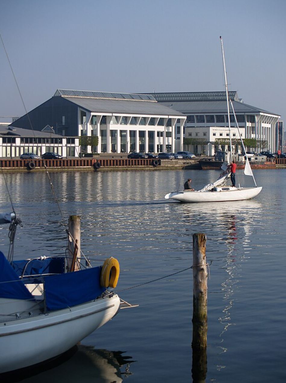 Jørn Utzon drew inspiration for the Paustian House from his experiences walking through a Danish beech trees. In his own words: “Walking in a Danish beech forest is like going through a hall of pillars. This hall of pillars dissolves into branches and into a leafy crown represented by the roof.” The result is a three-story structure that evokes the feeling of being within a forest, with a light and airy interior and expansive exhibition spaces. Externally, the building is characterized by its temple-like appearance, with external pillars that frame the structure along the harbor’s edge.