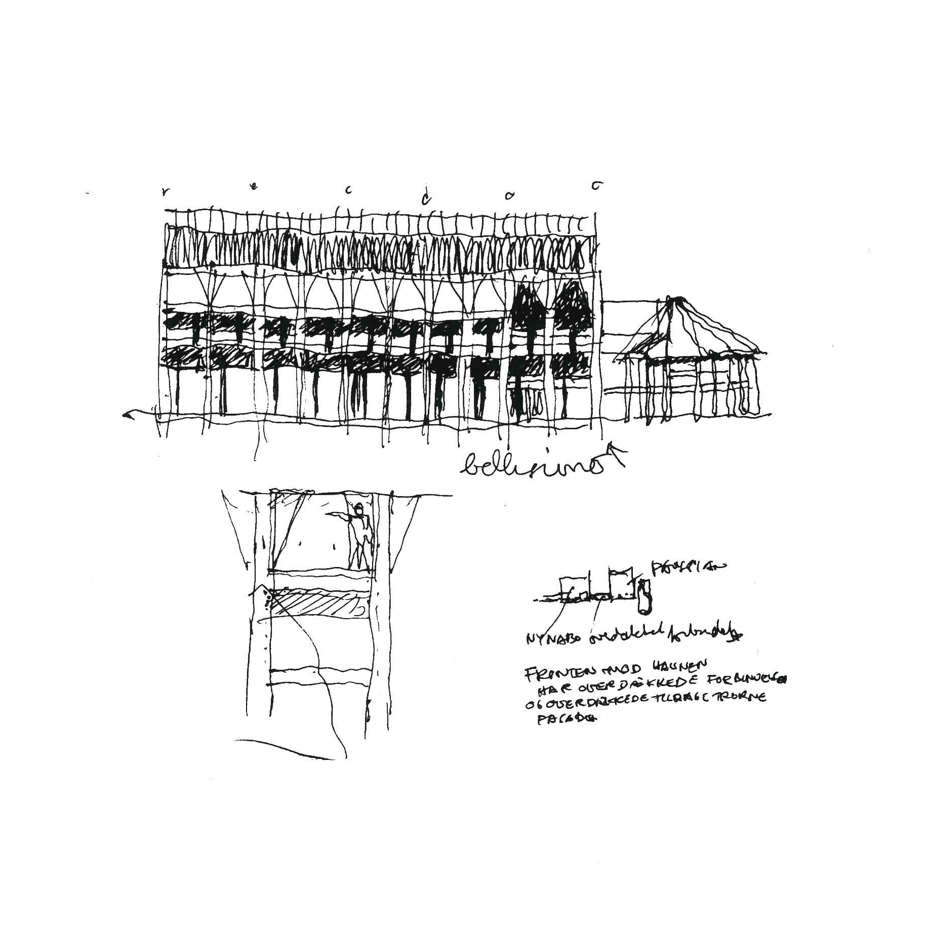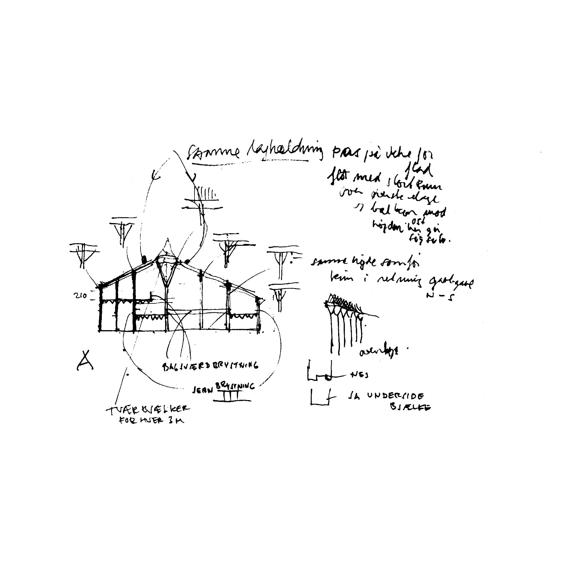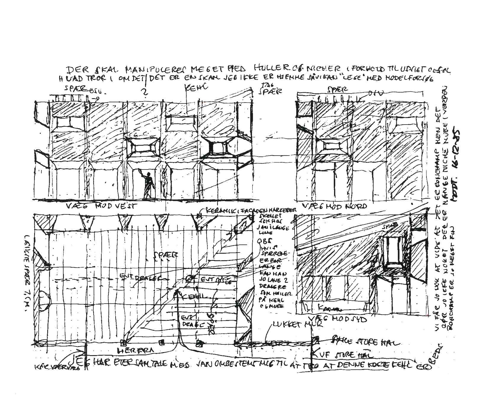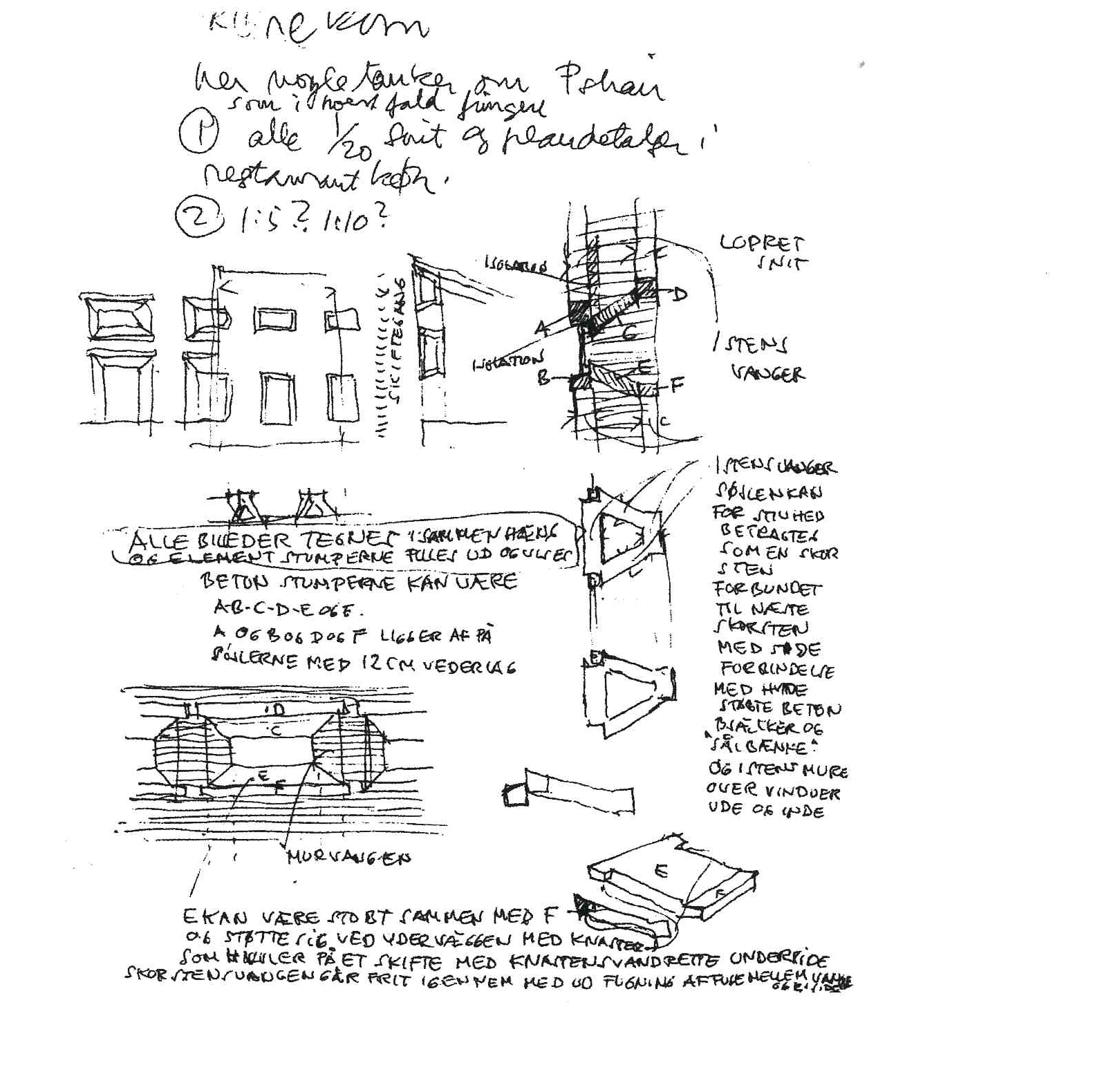 The genesis of the Paustian House dates back to 1985, when Ole Paustian, the owner of a thriving furniture business, approached Jørn Utzon with a request to design a showroom building on the Copenhagen waterfront, intended as an extension to one of his existing warehouses. Utzon conceived the initial design and sent sketches to his sons Jan and Kim, who then created the final drawings and construction plans.