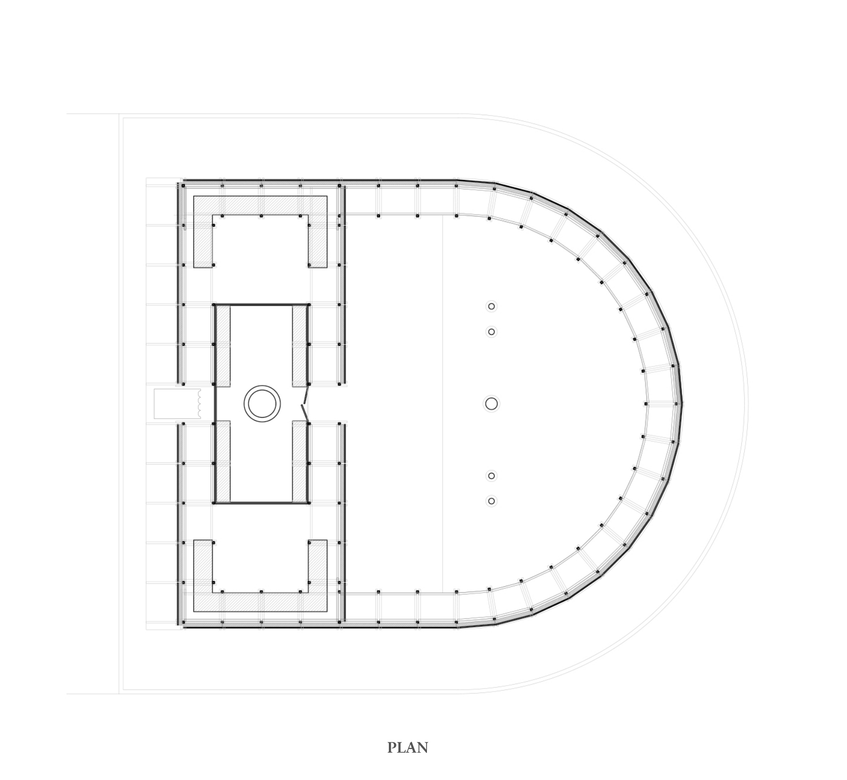 Combining changing rooms, steam rooms and cold-water fountain basins, the Roundabout Bath offers privacy while occupying a central point in the city. Revealing hidden poten@als of