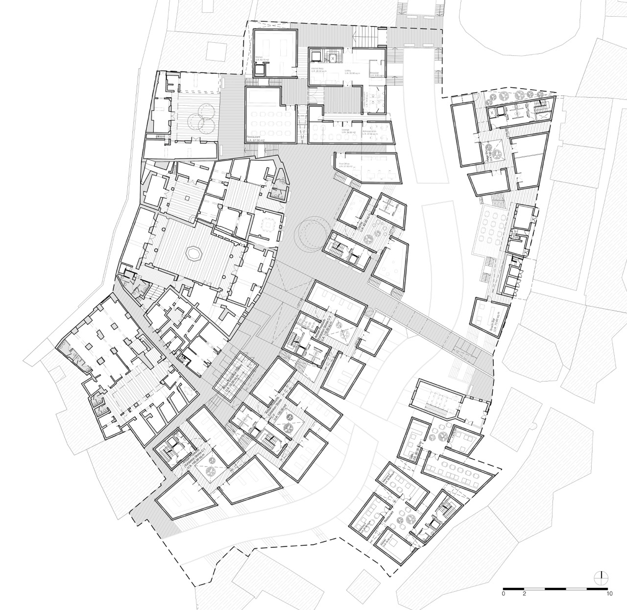 The architecture respected historical references while employing contemporary techniques and sustainable strategies. Passive climate control—via natural shading, airflow, and thermal mass— ensured year-round comfort with minimal energy consumption. Building massing and courtyard placement promoted cross-ventilation and comfortable microclimates throughout the site.