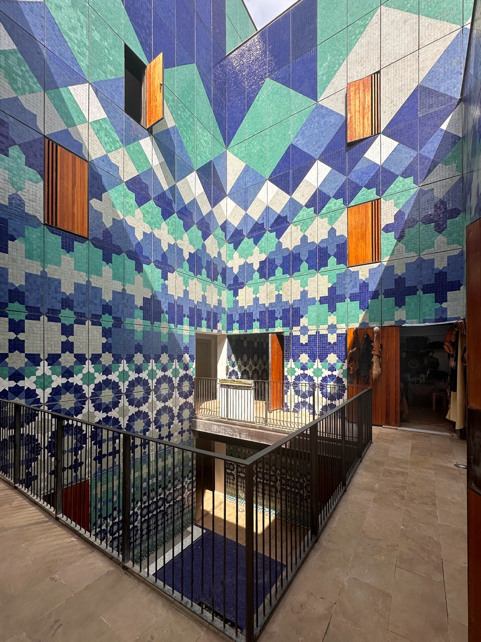 A striking feature of the project is its ceramic tilework. Artist Michael Pinsky collaborated with Michel Mossessian and the local craftsmen to develop a cohesive visual identity rooted in Fez’s 1,500-year- old zellige tradition.