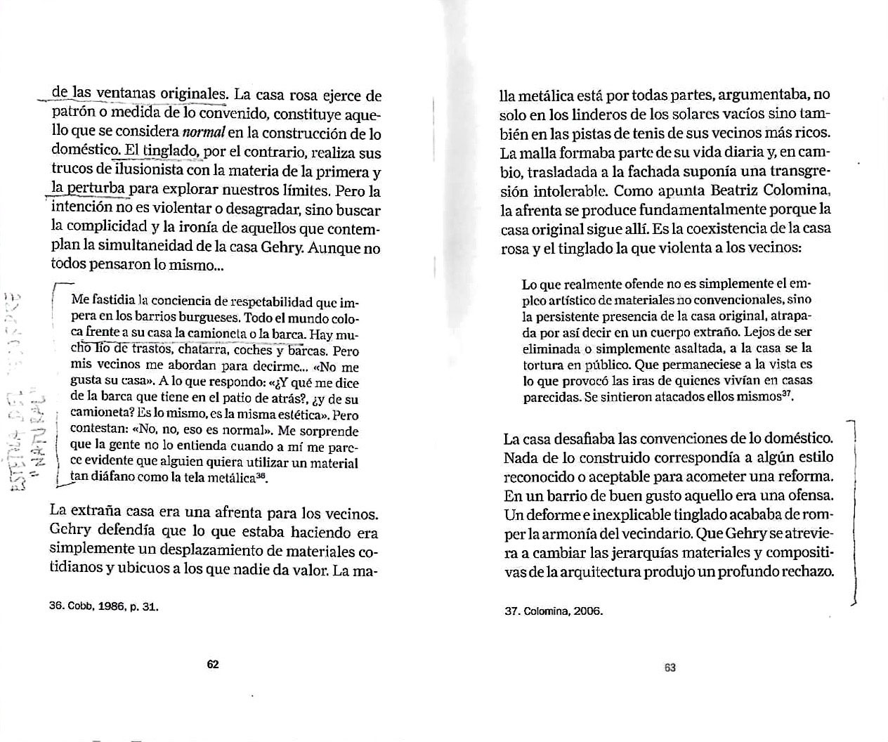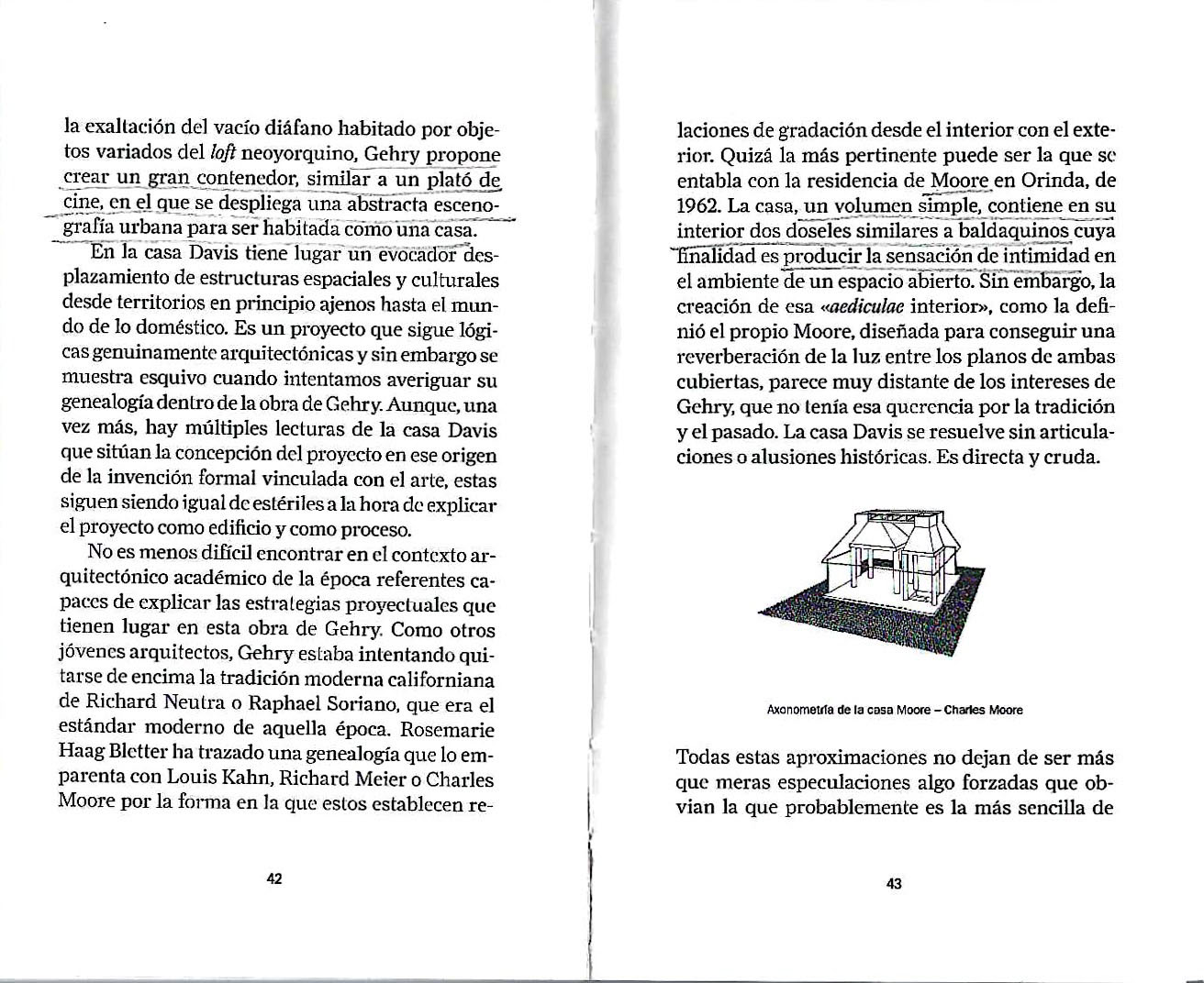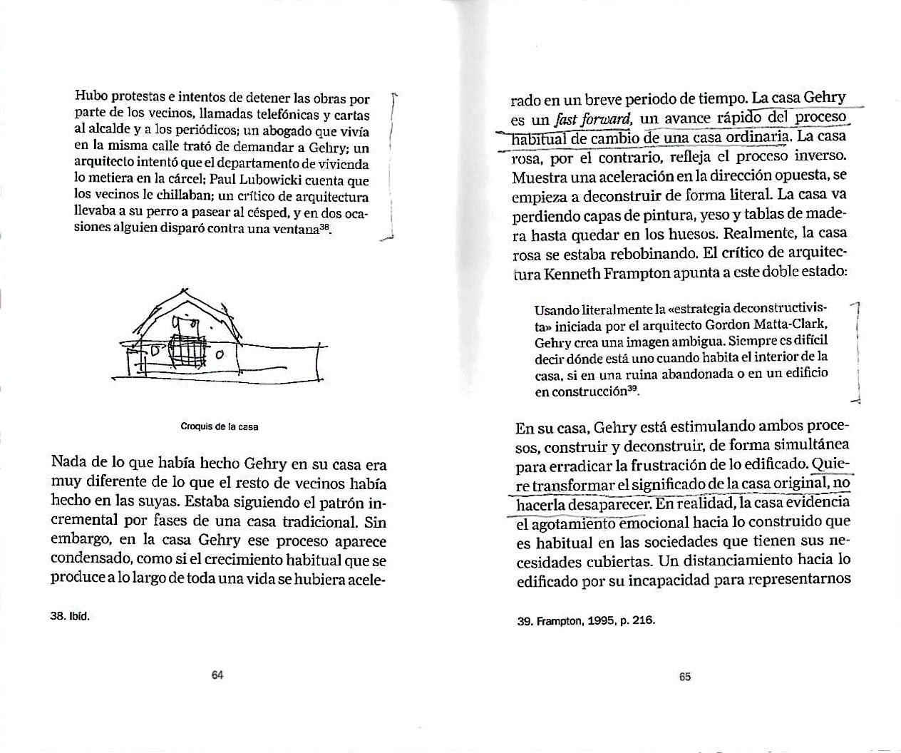 Este pequeño texto de apenas 70 páginas es una pequeña joya que os recomiendo si os interesa la arquitectura y el proceso creativo que la acompaña. El libro explica de manera clara y sencilla la casa que diseñó para sí mismo y su familia Frank Gehry en Santa Mònica, y todo lo que significó ese diseño en su carrera y la arquitectura en general.