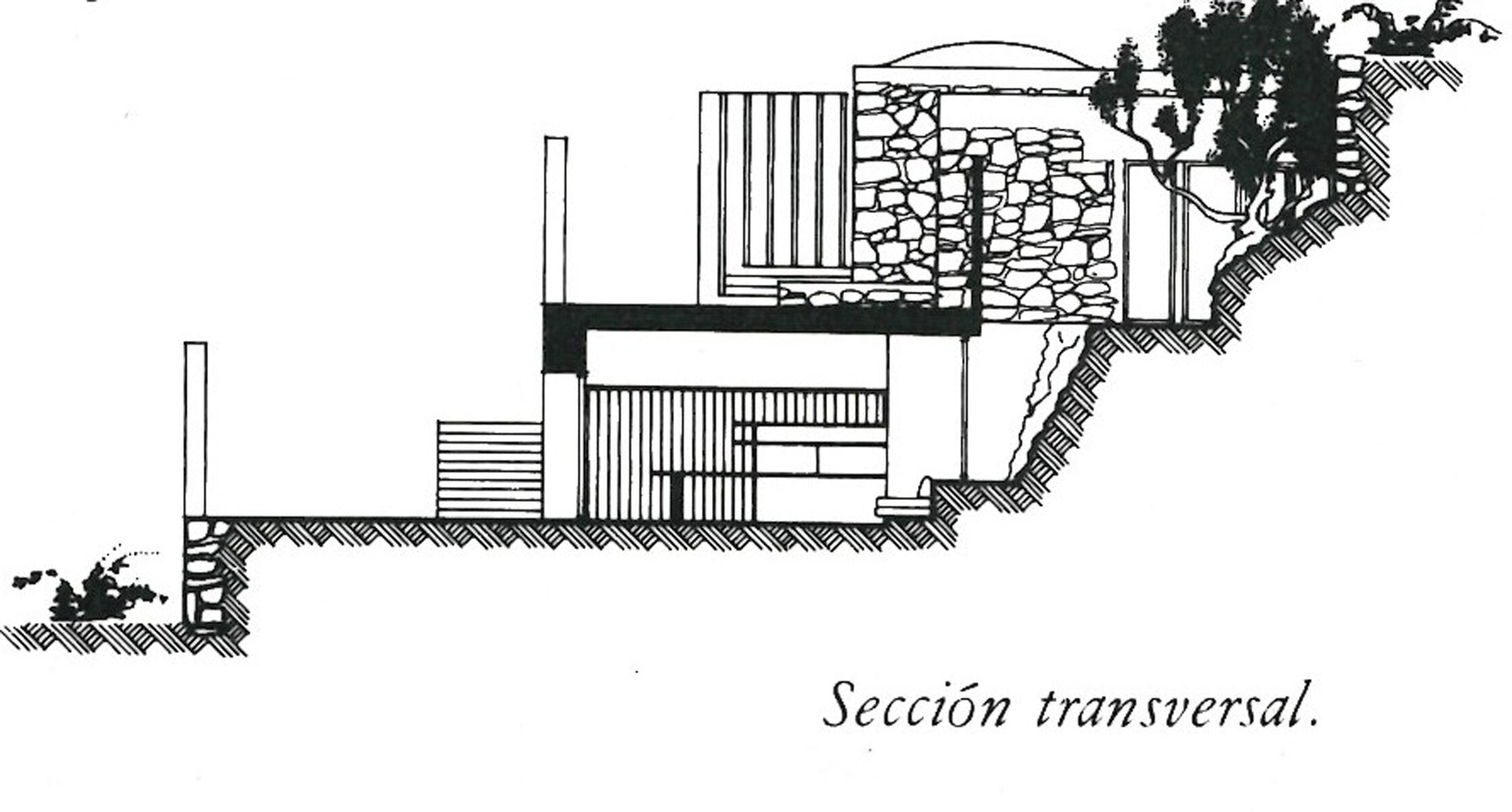 En el antigua damuso de sitúa el dormitorio principal. Un dormitorio auxiliar y el baño se han edificado al mismo nivel procurando no interferir la lectura del primitivo volumen. La sala de estar, comedor y cocina están en un solo espejo situado en un nivel más bajo. Esta sala se abre hacia el mar por una serie de balcones y hacia el monte por un patio posterior lo que permite una doble iluminación y una ventilación cruzada muy conveniente eb aquel clima. El uso ha demostrado el acierto del dimensionado generoso de terrazas y porches que se han convertido en auténtica sala de estar exterior.