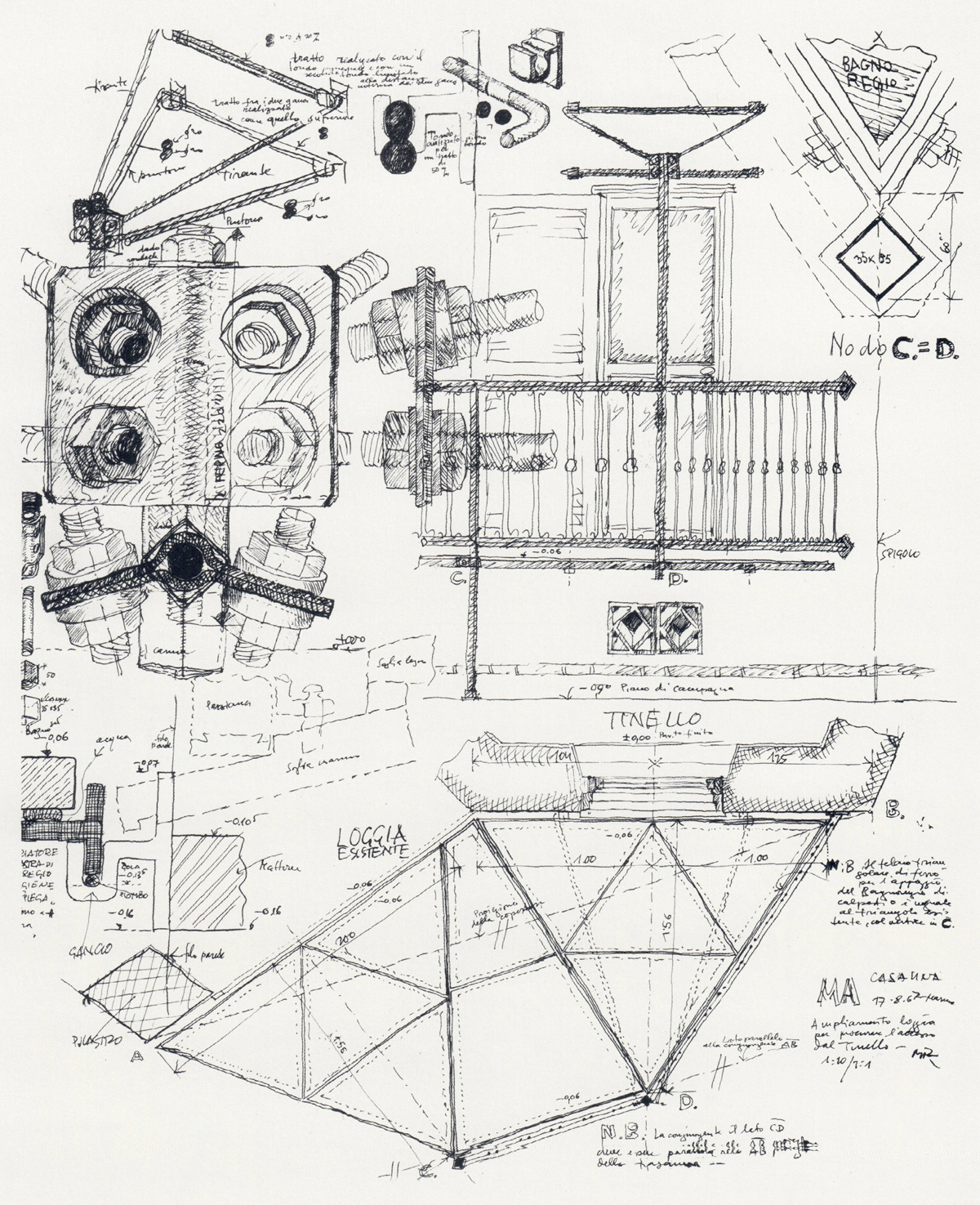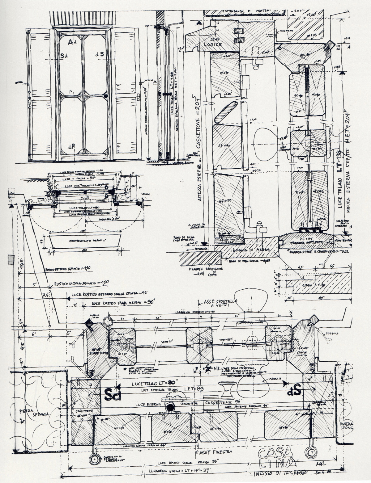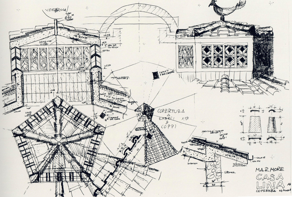 La Casa Lina de Mario Ridolfi supera los parámetros tradicionales del arquitecto para desarrollar un proyecto extremadamente minucioso desde el punto del vista de la artesanía y la relación entre material y geometría. Para ello, el arquitecto realizó cientos de dibujos, especialmente detalles arquitectónicos en donde propone maneras muy complejas de utilizar materiales tradicionales.