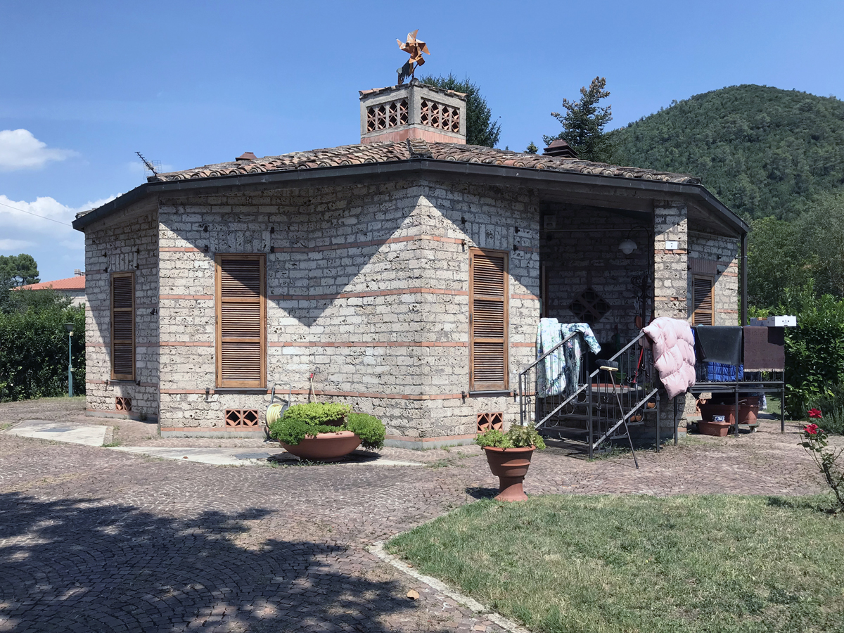 Aunque en los primeros croquis Ridolfi especuló con una casa con base cuadrada o en forma de ‘L’ dividida en franjas horizontales, el proyecto termina construyéndose a partir de dos pentágonos superpuestos y rotado uno setenta y dos grados respecto del otro dando como resultado final una planta con forma de estrella de 10 puntas. La zona más pública de la vivienda se localiza en el centro de la estrella y ofrece acceso directo los dos dormitorios, baños y cocina, localizados en sus puntas.