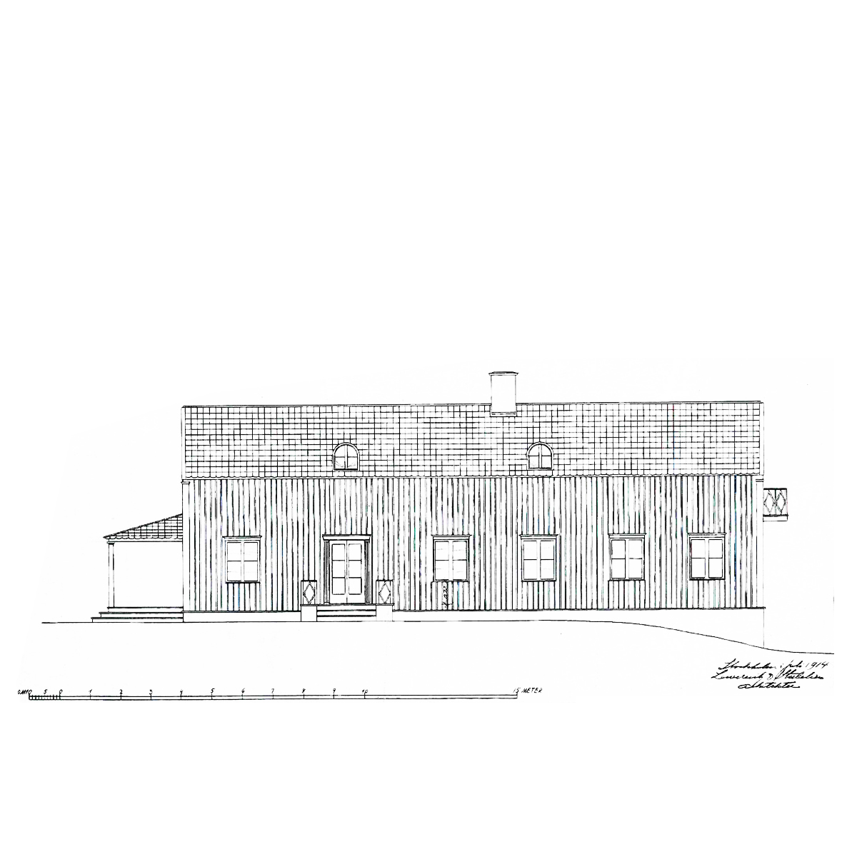 All the work was carried out by local artisans; the heating system was installed by the client himself and Filip Mansson was responsible for the painting. The building which was erected in 1914 and whose architect was the firm of Lewerentz & Stubeliusm cost a total of 25.000 Skr.