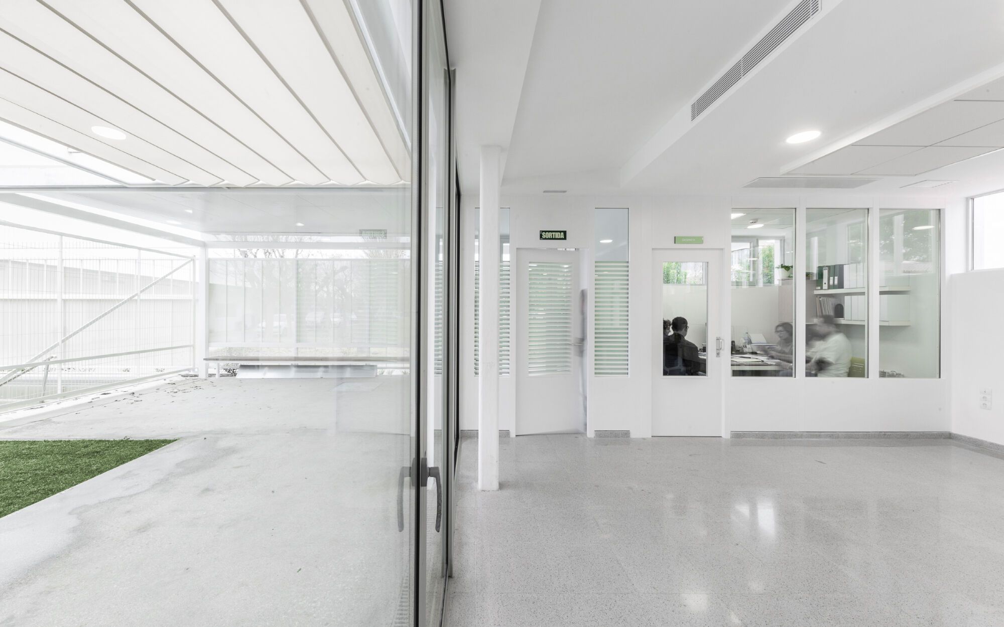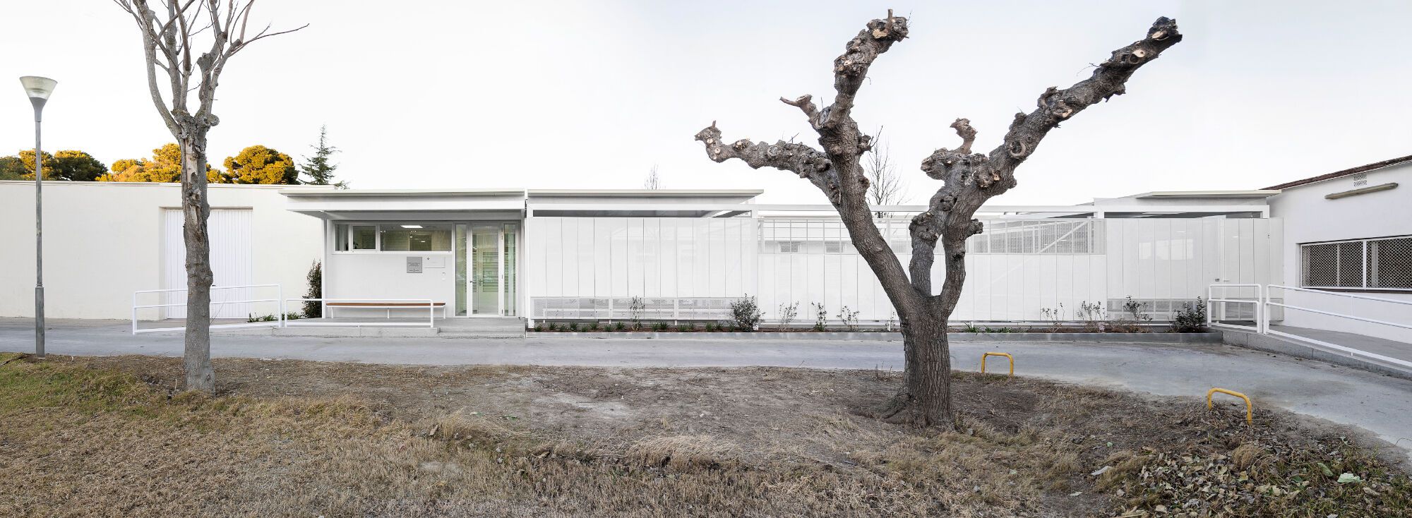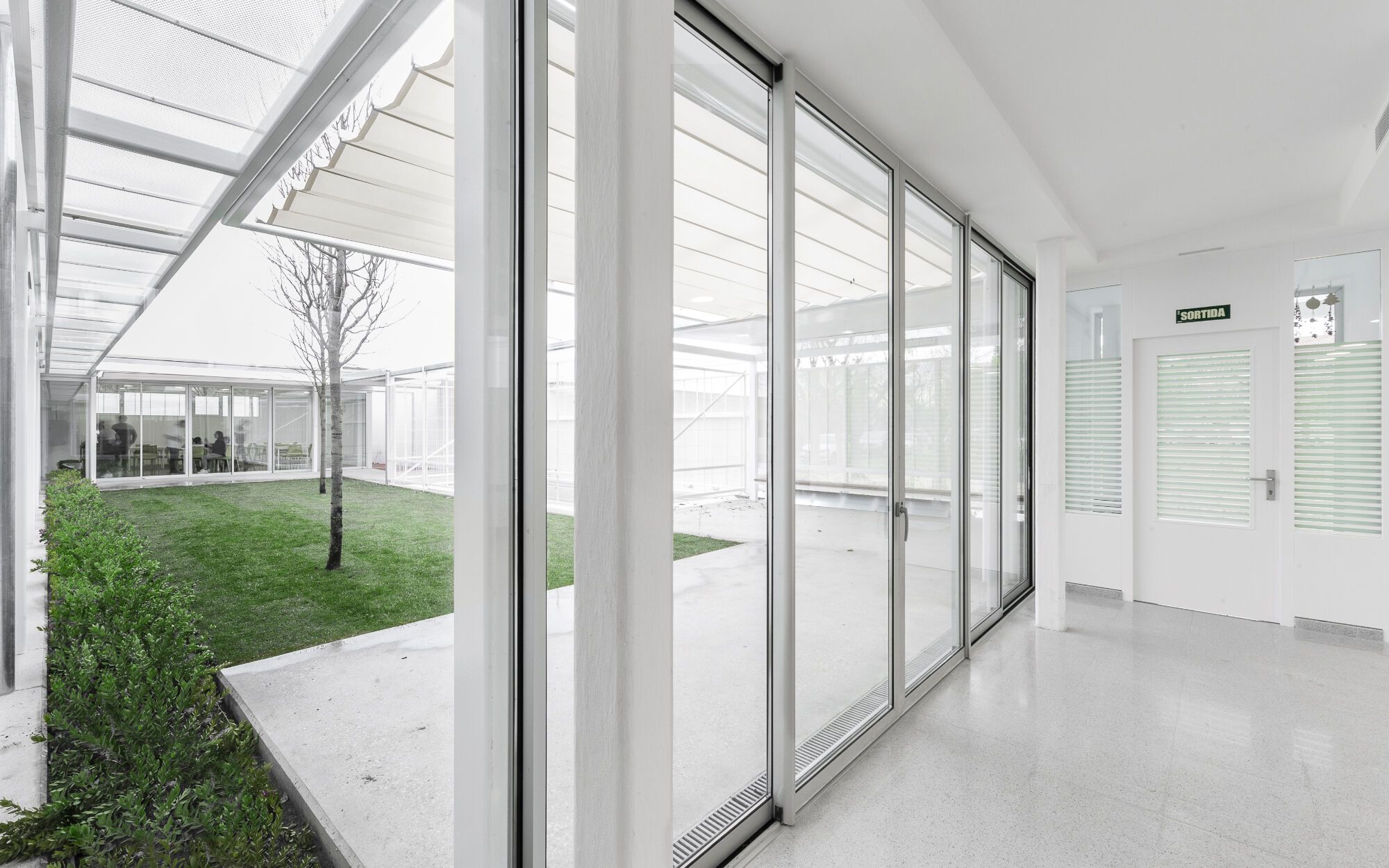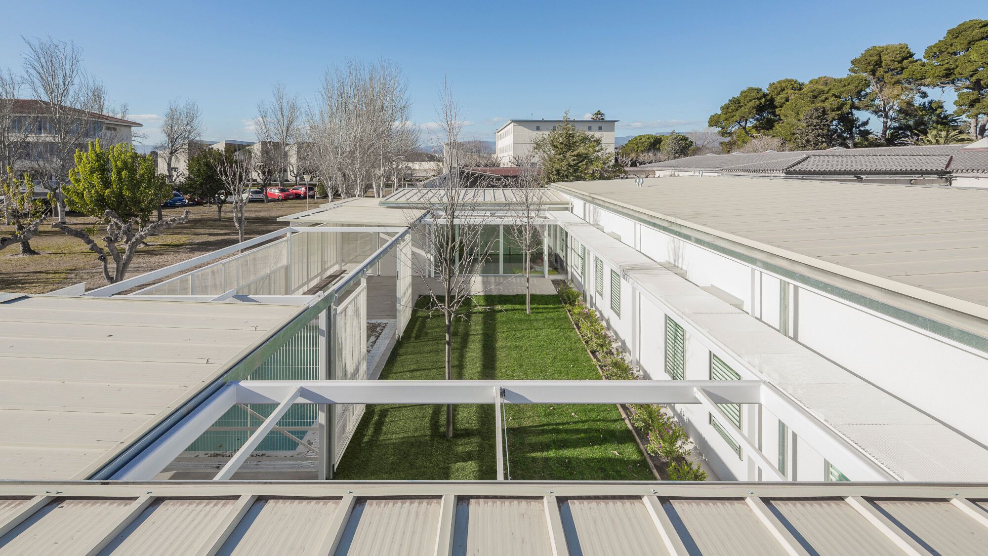 The ATRIA Home (Reus, Baix Camp) is part of the Villablanca Servicios Asistenciales Centre (Pere Mata Group). ATRIA is the first residence in Catalonia to host children and adolescents with intellectual disabilities. The centre is the result of the transformation of an existing storage building, the addition of two new volumes, and a system of porches and canopies that create a central tree-lined courtyard.