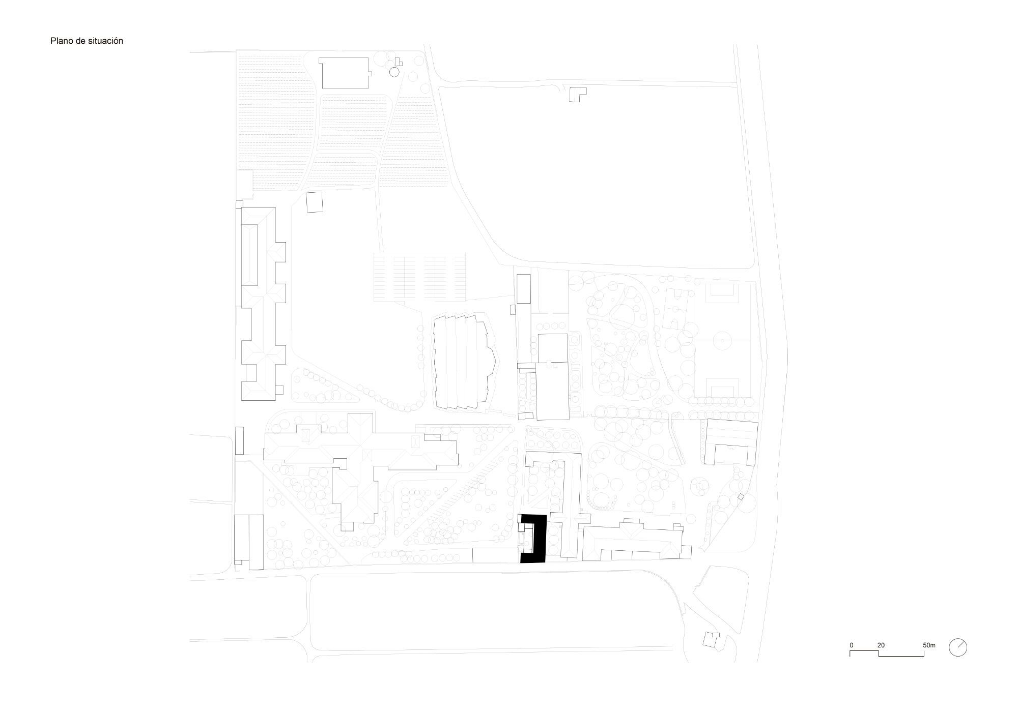 The project is organised around a central courtyard, while also incorpo-rating the courtyards of the neighbouring buildings while enjoying views of the agricultural fields through a new window opened in the wall of the existing enclosure. The Home is a “courtyard house” that aims to hu-manise the experience of living, fostering the natural light and cross-ventilation. The living and dining rooms, located in the new volumes, extend their activity into the courtyard through large openings that open onto shaded, pleasant, and comfortable transitional spaces.