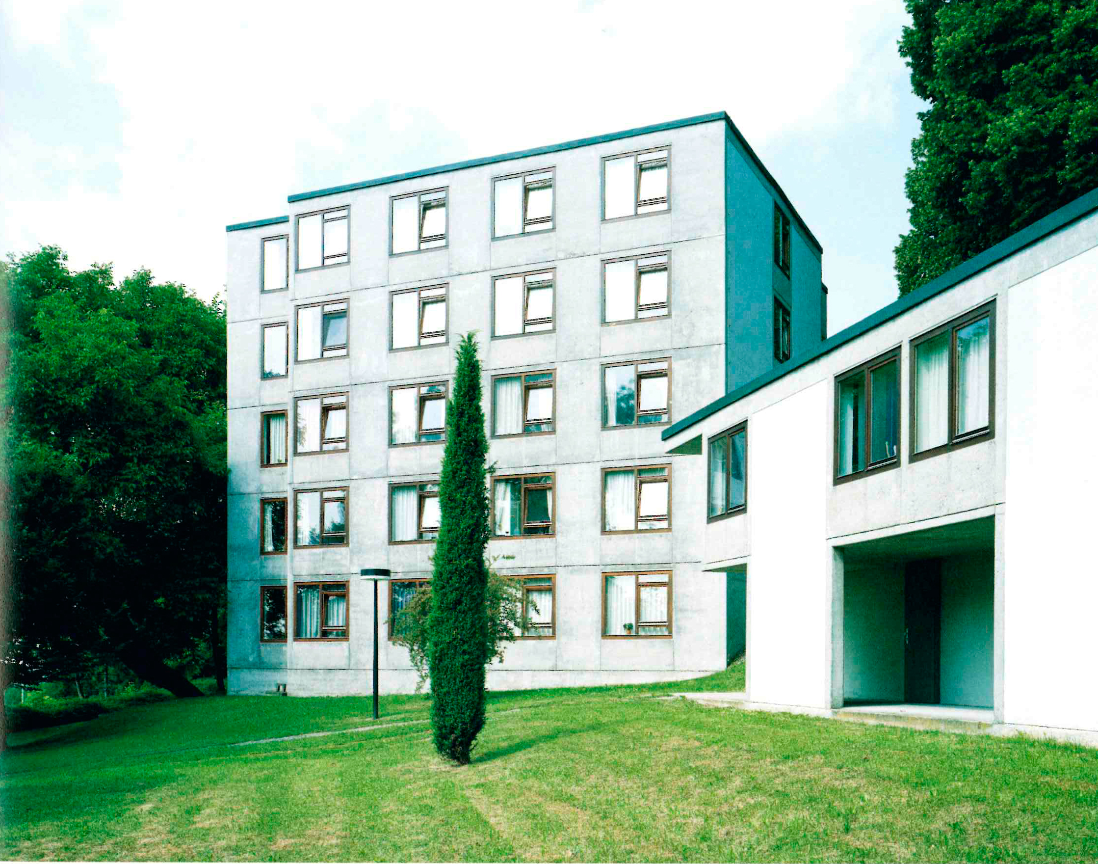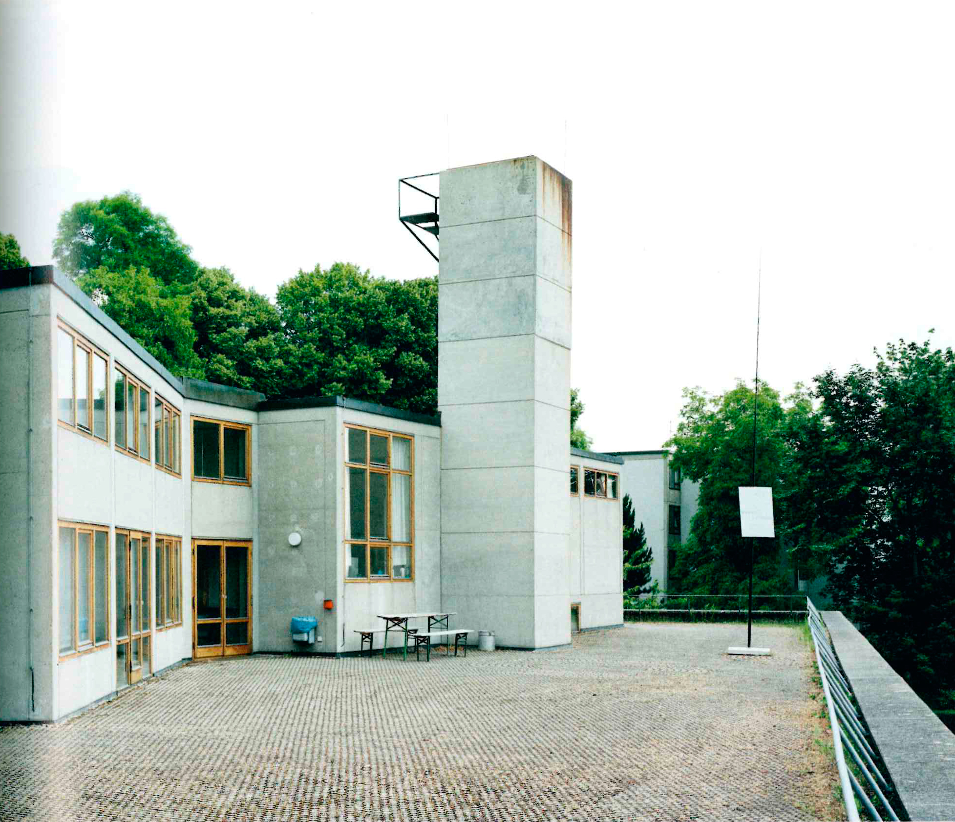 La Hochschule fur Gestaltung (HfG) de Ulm es la obra de arquitectura más importante de Max Bill. Ubicada en la colina del Oberer Kuberg al oeste de la ciudad, el complejo se divide en diferentes edificios independientes de acuerdo a las funciones “trabajo”, “habitación” y “comunidad”, siguiendo, en este sentido, aunque con un resultado formal diferente, el modelo de la Bauhaus de Walter Gropius (1925-1926). Las vistas aéreas casi canónicas tomadas por Otl Aicher subrayan la relación urbanística entre la HfG y la catedral de Ulm y sugieren también una unión simbólica entre los dos edificios más importantes de la ciudad. Siguiendo la tradición de la Bauhaus, la HfG se relaciona también indirectamente con la idea del monasterio medieval.
