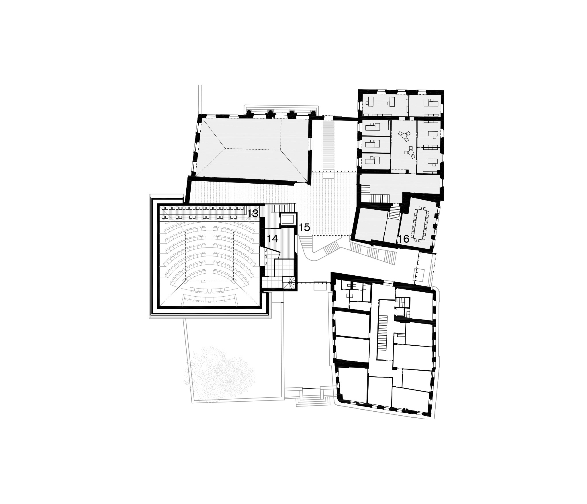 La intervención rehuye imitar la arquitectura del pasado pero sin ignorar la historia. Un edificio eficaz, cómodo, moderno y sostenible, creando una atmósfera particular que combina el pasado con el mundo contemporáneo, que regenera el tejido urbano y que, construido con las técnicas más innovadoras, establece una imagen intemporal en la silueta del conjunto histórico medieval.