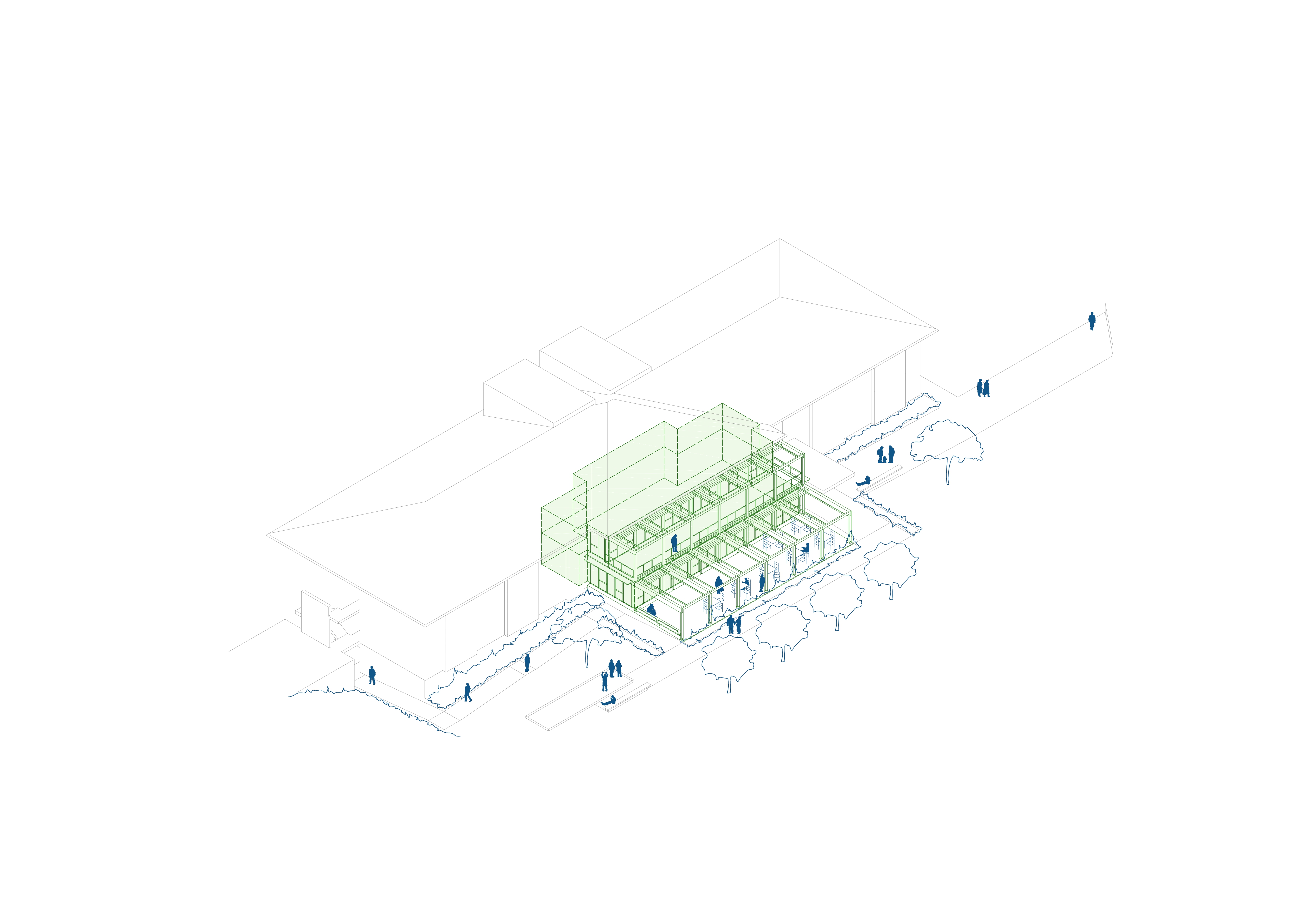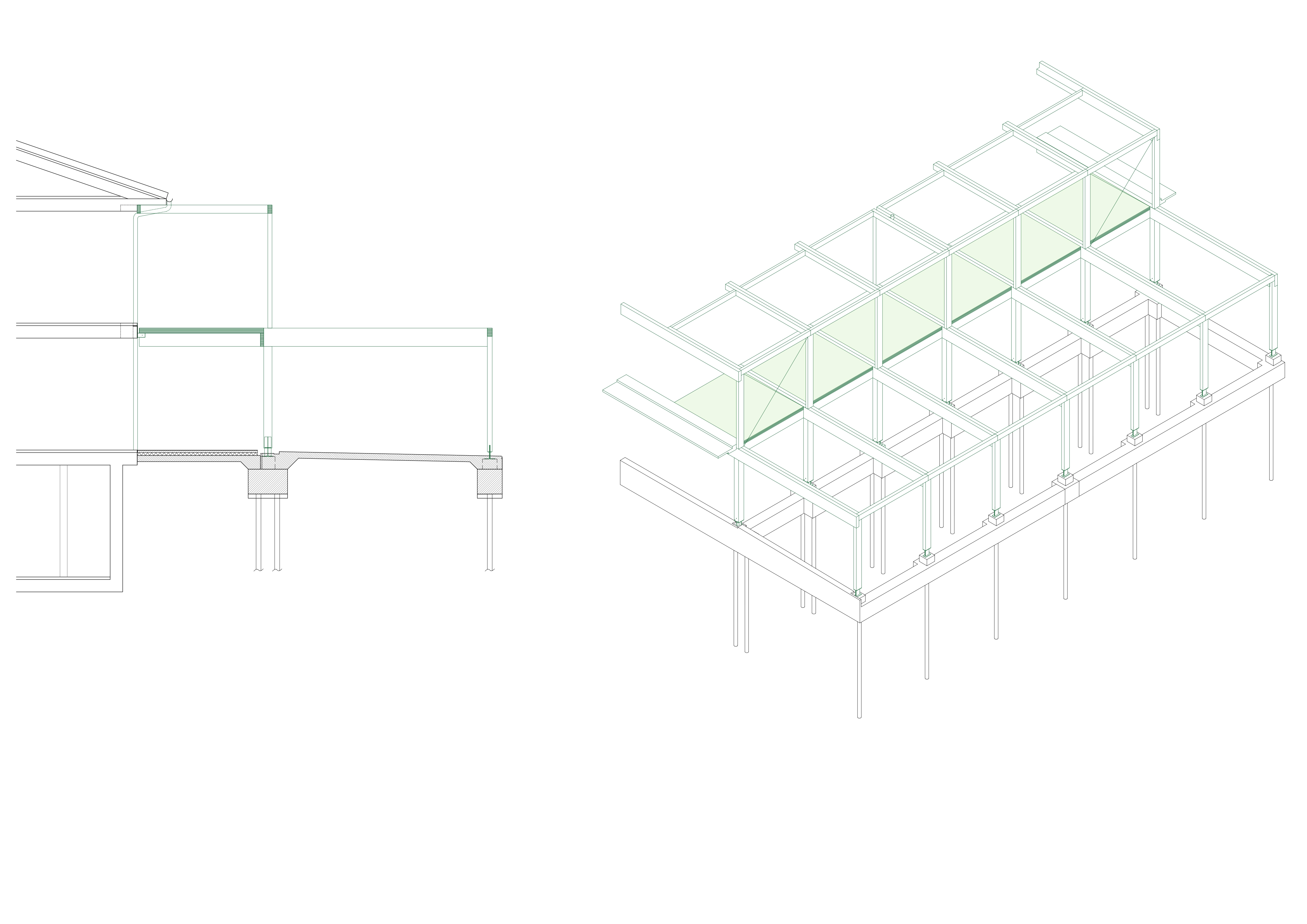 The slenderness of the structure and the transparency of the façade of the extension allow sunlight to naturally light the interior space.