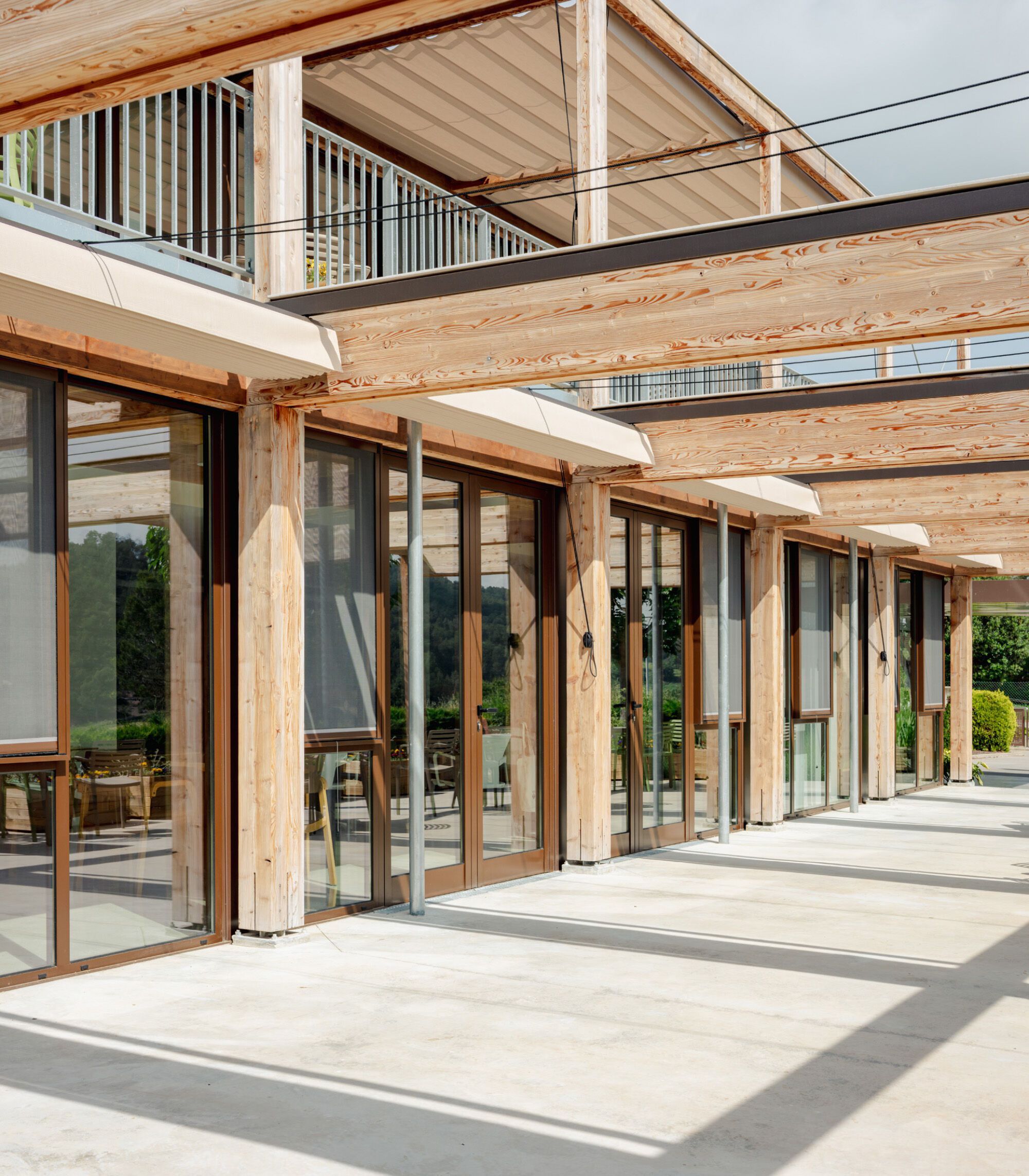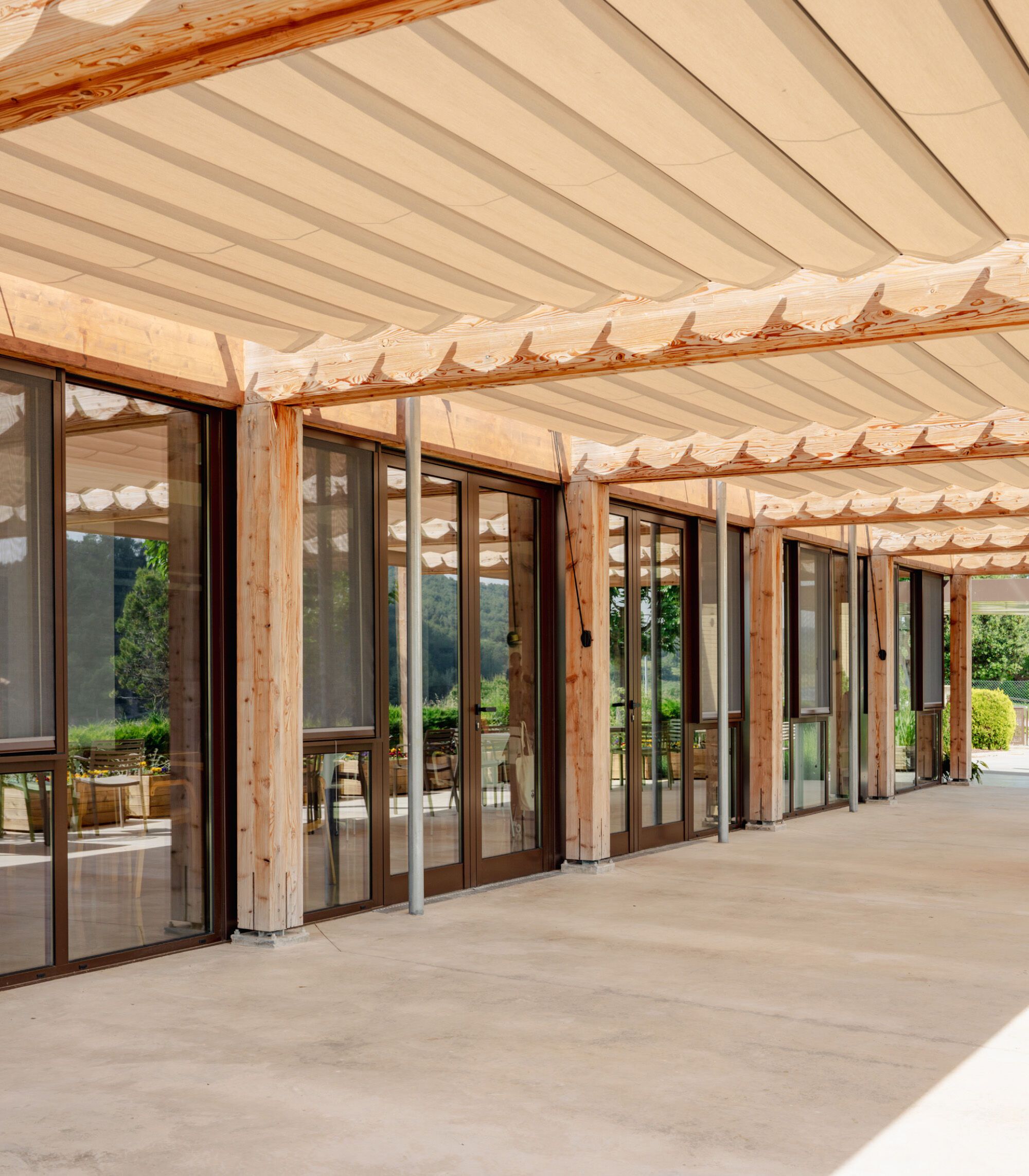 The project required dismantling (and partially demolishing) the existing facades of the common spaces to be renovated (living and dining rooms on the ground and first floors) to reconstruct a more transparent and permeable envelope, connected to two large terraces, where sunlight would be regulated by a system of awnings integrated into the wooden structure.