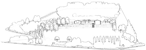 El apilamiento material de sus cerramientos en bandas horizontales de piedra, vidrio y zinc parece aludir, más por su potencia literaria que por su eficacia real, a su situación respectiva sobre la tierra firme, en el aire transparente, o en el cielo de un día gris. El proyecto desecha las posibilidades expresivas que ofrece la construcción de esos estratos diferenciados, enrasados todos al exterior para producir el perfil más simplificado de la casa.
