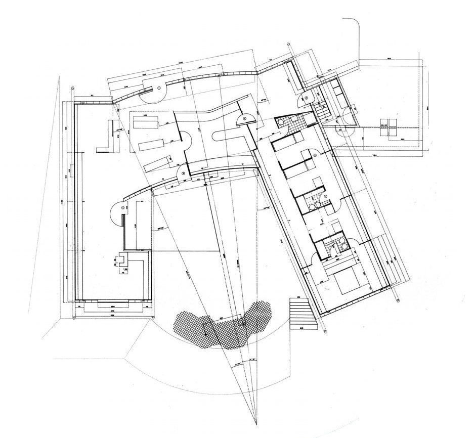 Emplazada a mitad de una ladera y dispuesta casi en su totalidad sobre la más alta de tres plataformas moldeadas en el terreno por encima de su cota natural, la casa adopta una forma y un programa convencionales, y ocupa una posición dominante sobre el valle verde al que abre sus vistas. Se advierte el interés especial de su autor por controlar los efectos dinámicos del objeto en la disposición de las piezas de estar y dormitorios, que avanzan hacia el valle ligeramente asimétricas y apoyadas sobre dos plataformas consecutivas, y en su visión a medida que uno se aproxima hacia él, fundido en el monte o recortado contra el cielo.