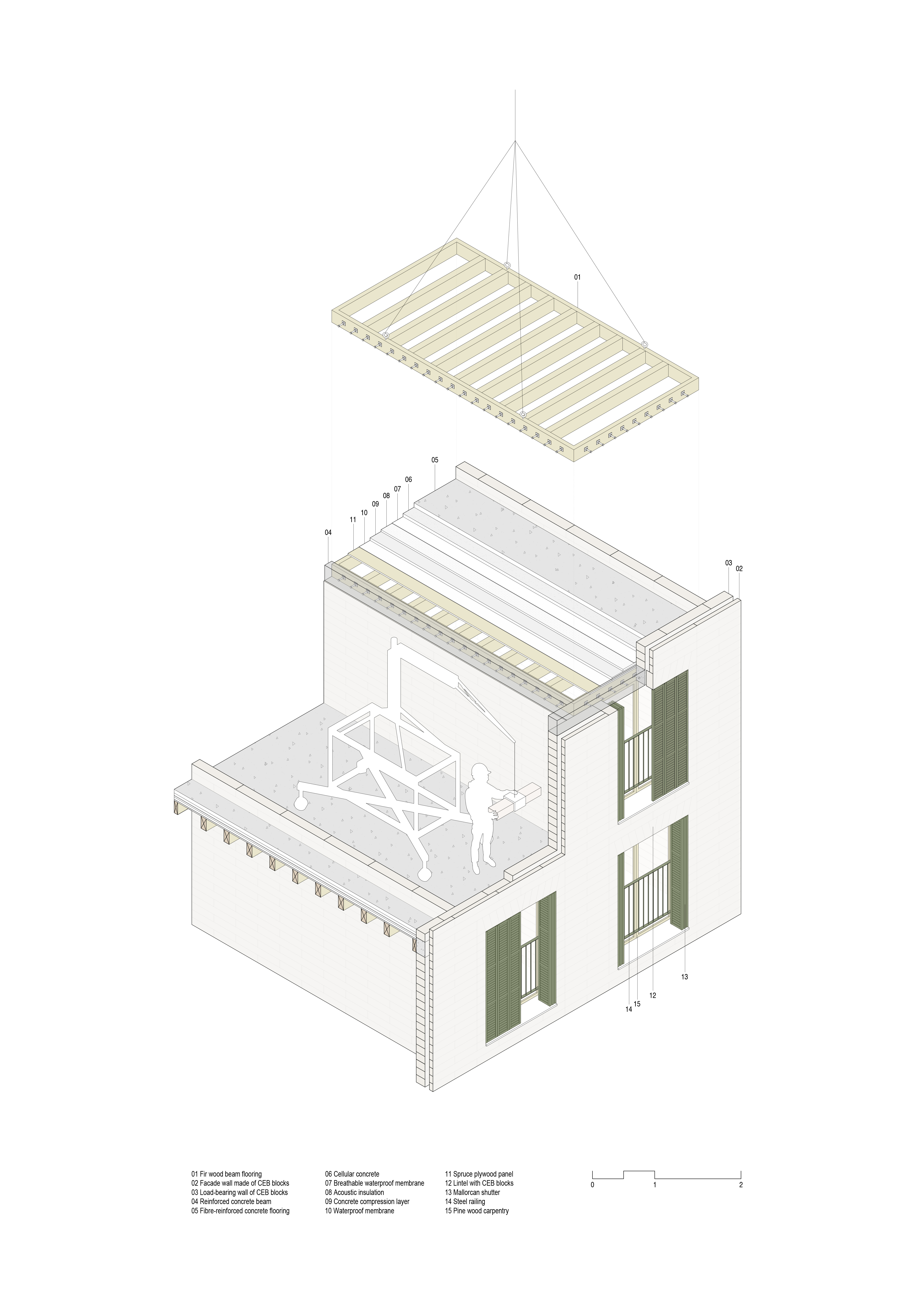 Organised around interior courtyards and exterior walkways, the dwellings encourage community interaction, cross ventilation and climatic comfort. Their compact and bioclimatic design optimises the use of space and enhances everyday life, reconciling energy efficiency, sustainability and social cohesion in a single model of living.