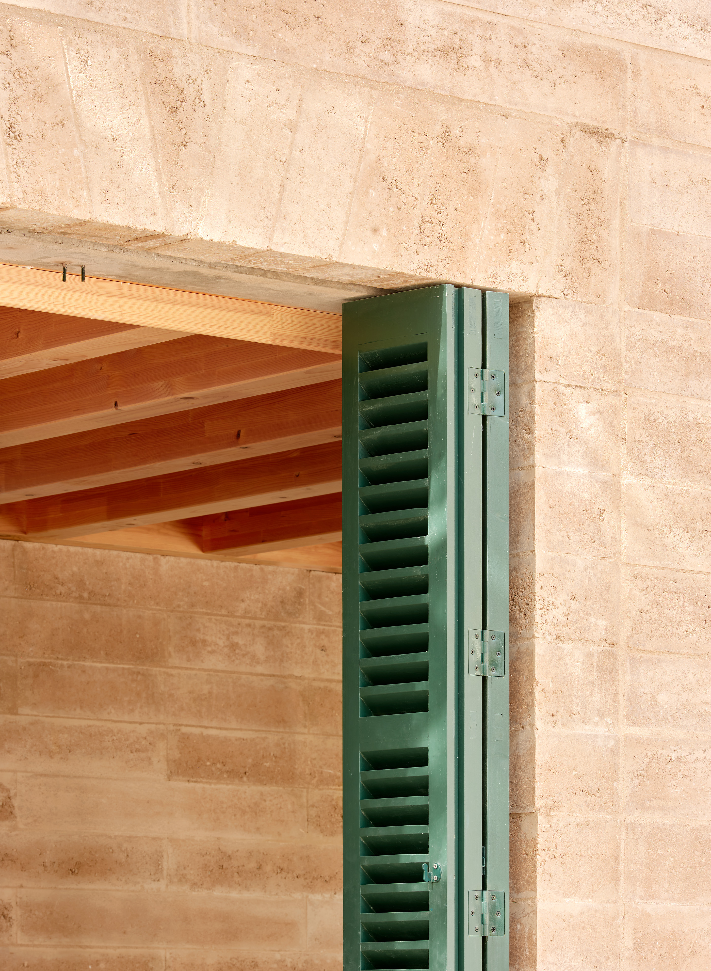 With a total of 38 units distributed across two buildings, the complex combines innovation and tradition through the use of locally produced compressed earth blocks (CEB) and wooden slabs, reducing the carbon footprint and reinforcing the island’s architectural identity.
