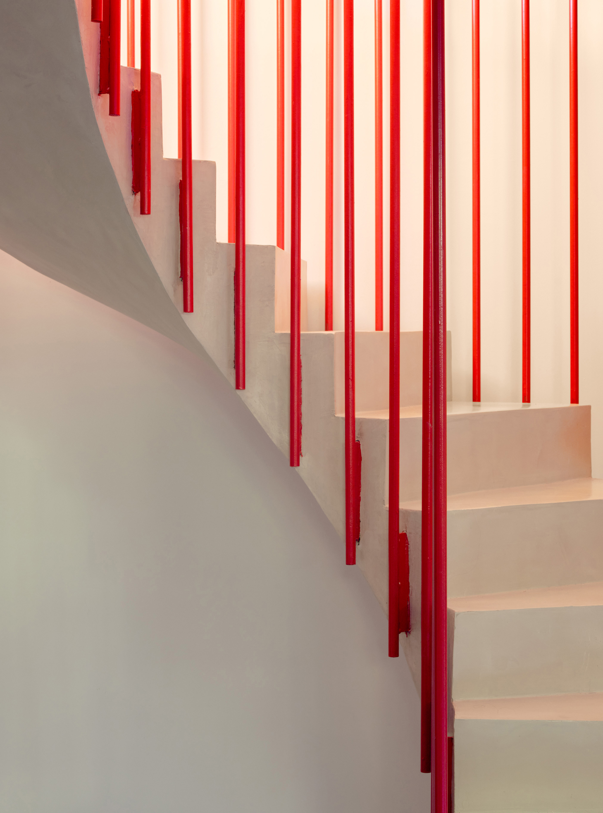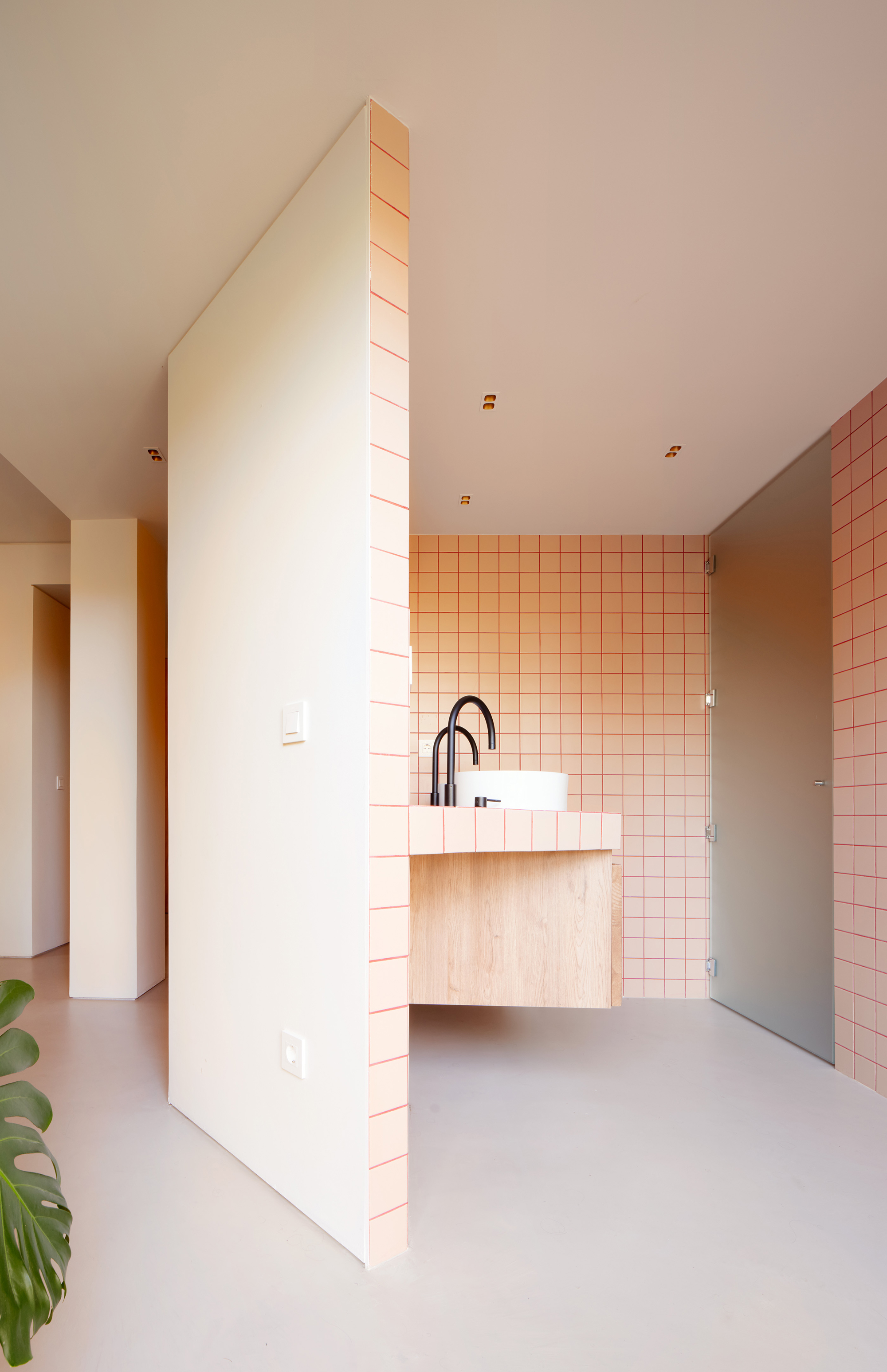 Once the initial context had been studied and in a new exercise focusing on the temporality of interior design versus the timelessness of the architecture on which it is applied, it was decided to rotate the main axes of the new dwelling. On the one hand, this was in response to the new layout compared to the original. The original dwelling was, as is normal, more compartmentalised and was, in part, the result of locating the different uses in the two rectangles that made up the building’s floor plan. The proposal, with much more open, generous and flexible spaces, did away with this division into two and colonised the floor plan in a more global way. The new axis, created by joining the four corners of the existing roofs, allowed this new way of settling within the perimeter walls to be visible. On the other hand, and in relation to our recurring interest in the ephemeral nature of decoration as opposed to the permanence of architecture, distorting this angle allows us to highlight this temporal dichotomy more obviously.