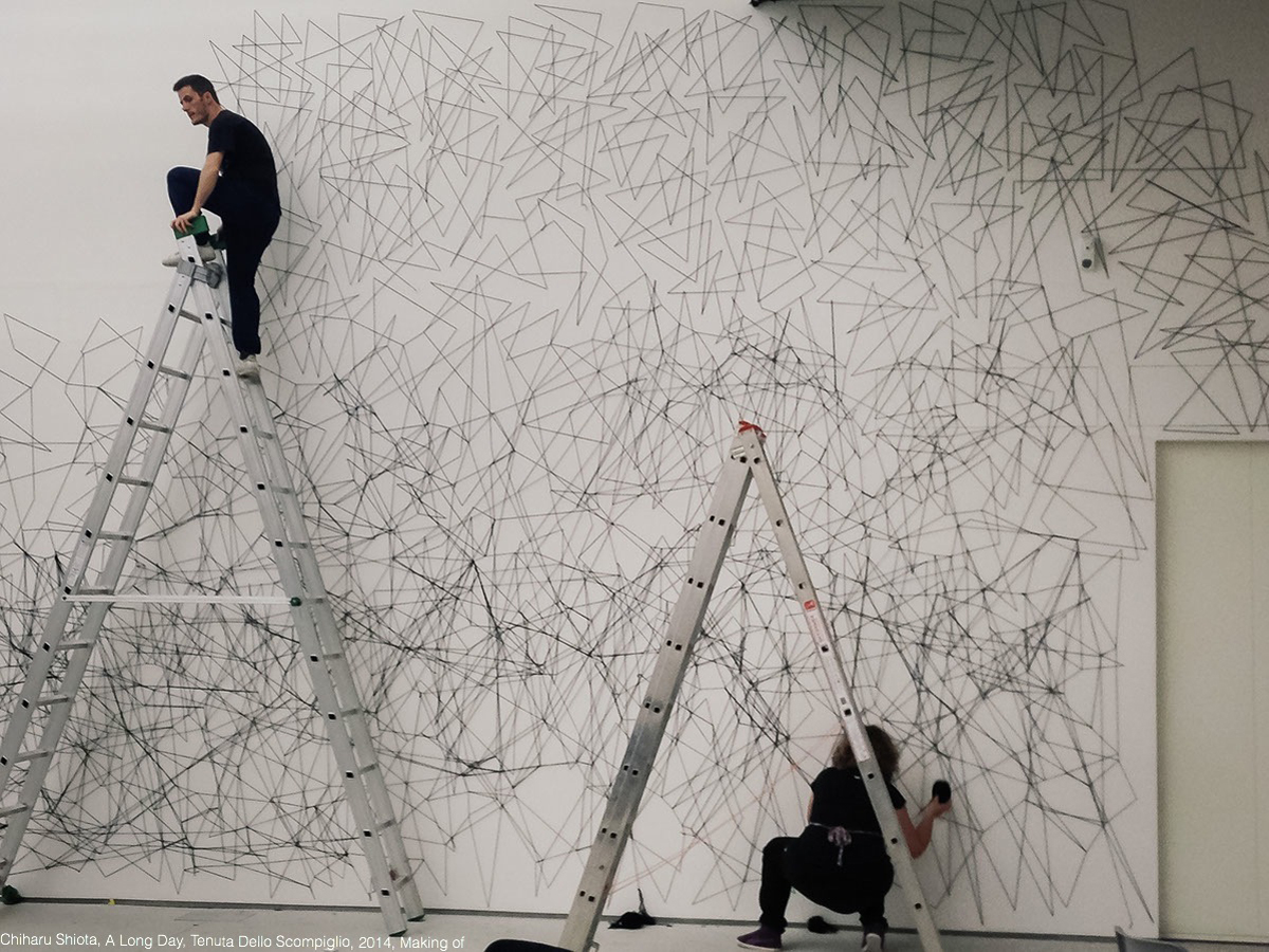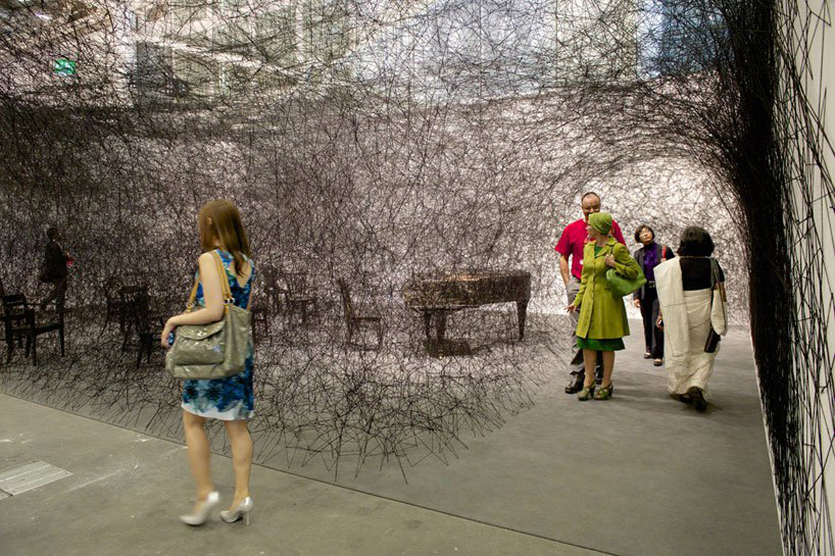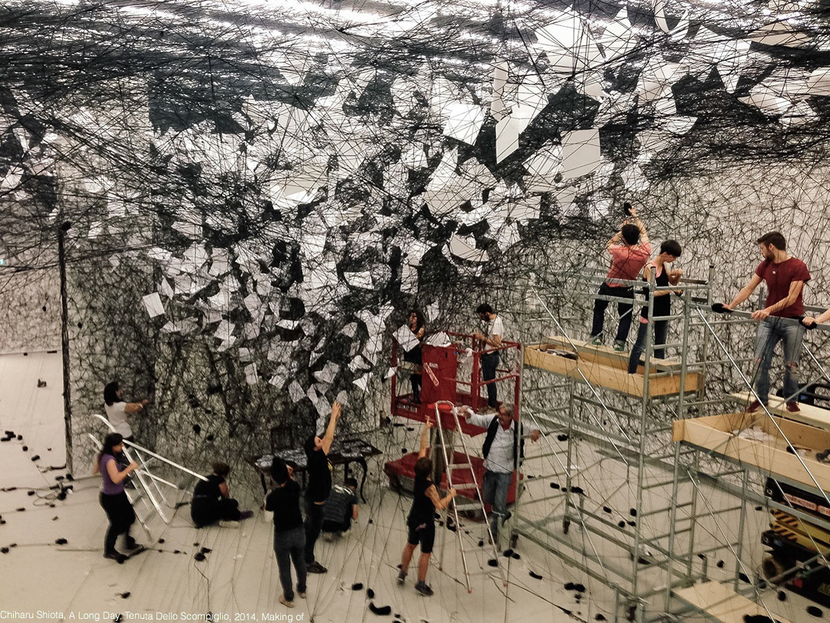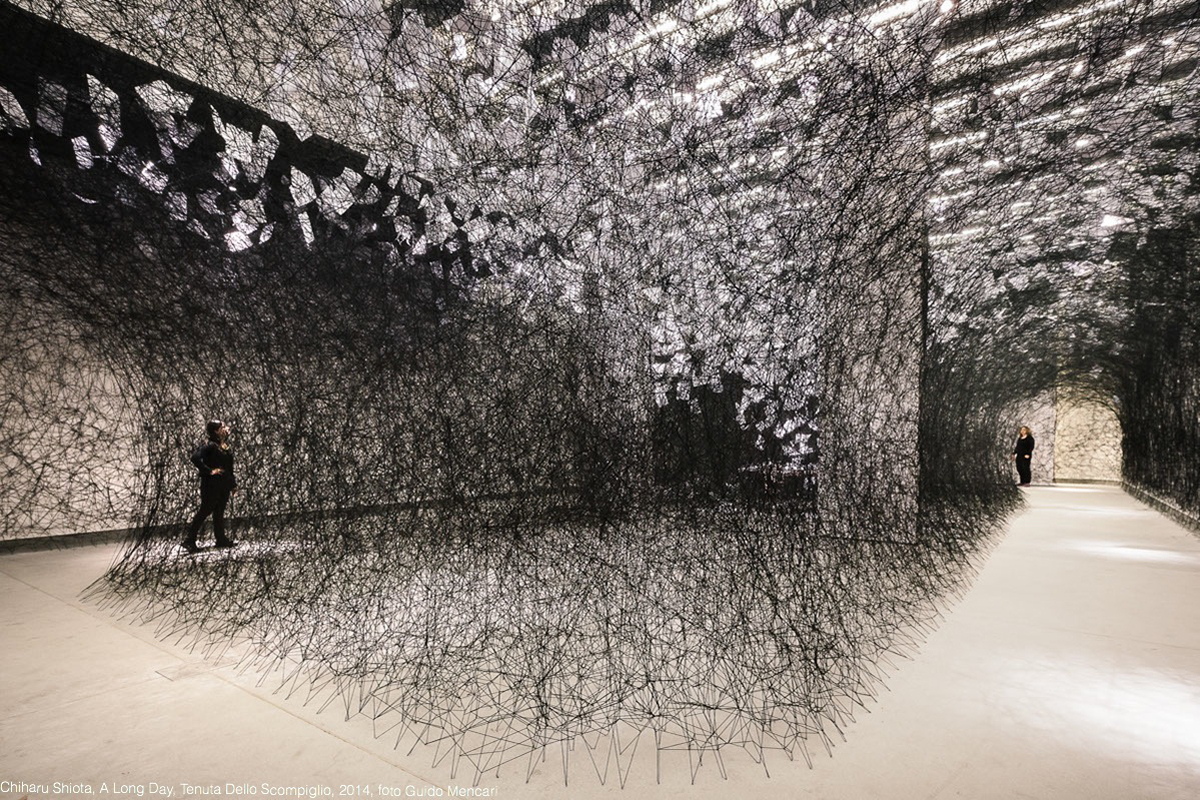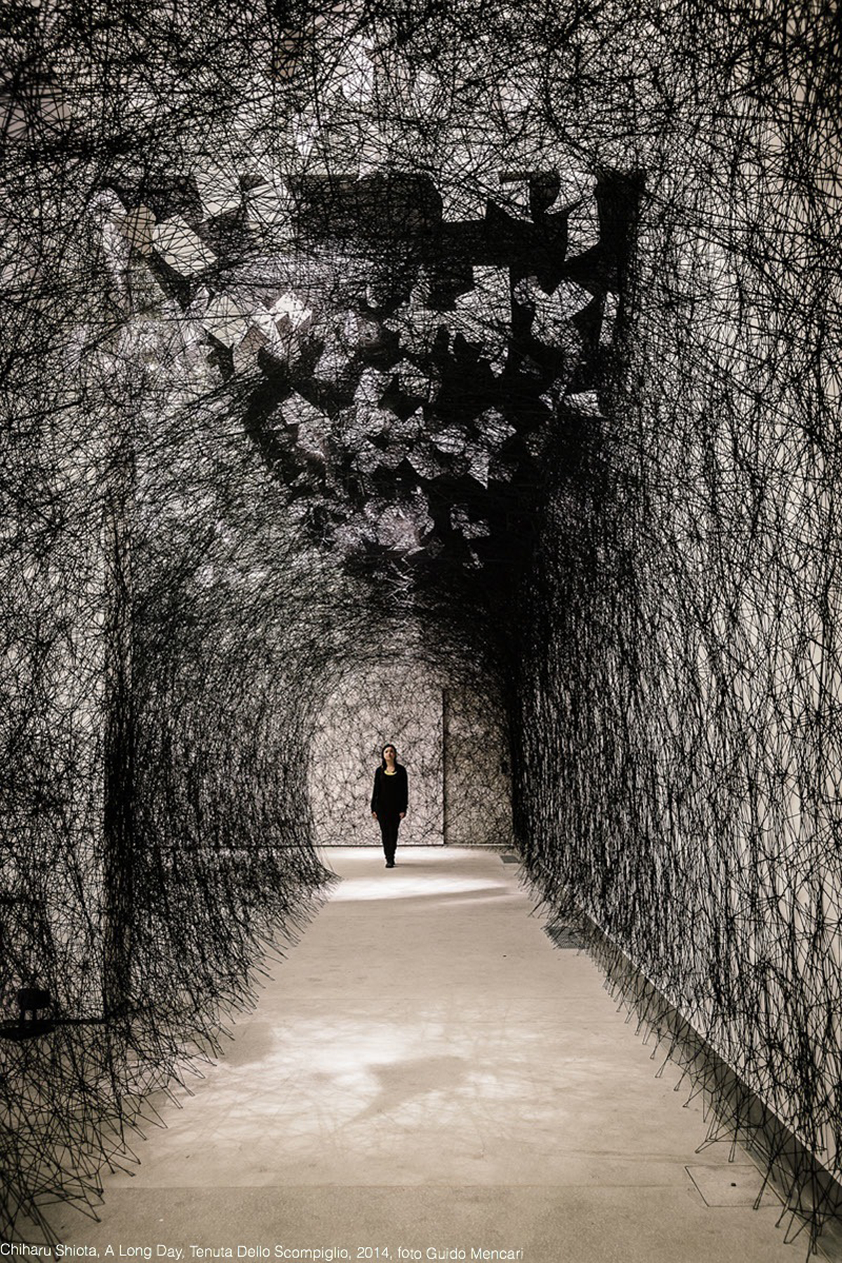 Chiharu Shiota es una artista especializada en la realización de performances e instalaciones. Es conocida por la creación de obras que llenan espacios vacíos y por lo que ella llama: ambientes poéticos, monumentales y delicados. La obra de Shiota trata sobre la memoria y el olvido, los sueños, las huellas del pasado, la infancia y la ansiedad. Entre su trabajo se encuentra la impenetrable instalación de hilo negro que a menudo encierra hogares y objetos que en ella habitan, espacios en los que se juega con los recuerdos en la mente.