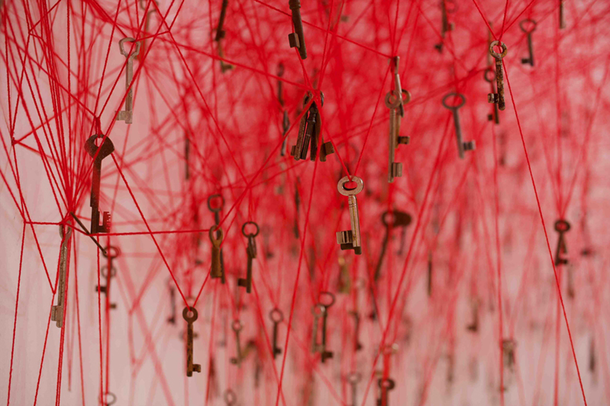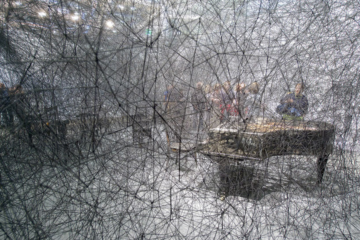 Las instalaciones de Shiota producen espacios propios en los que se hacen visibles una innumerable cantidad de hilos que unen diversos puntos dentro de sus obras. En los escenarios domésticos que propone, los hilos se convierten a su vez en puentes entre un piano y maletas o a un espejo. En su obra, estas fibras son venas por las que circulan hilos conductores de relatos particulares y lágrimas universales; el miedo al abismo, la vida y la muerte, todo esto entremezclándose como un rizoma a través de múltiples ramificaciones que entorpecen la relación entre el sujeto y el mundo. Los hilos transportan dicha información y son esenciales para entender lo que quiere decir la artista; forman redes o alambradas que obstaculizan el paso de extraños a espacios donde la vida cotidiana entra en conflicto con la producción que Shiota desea.