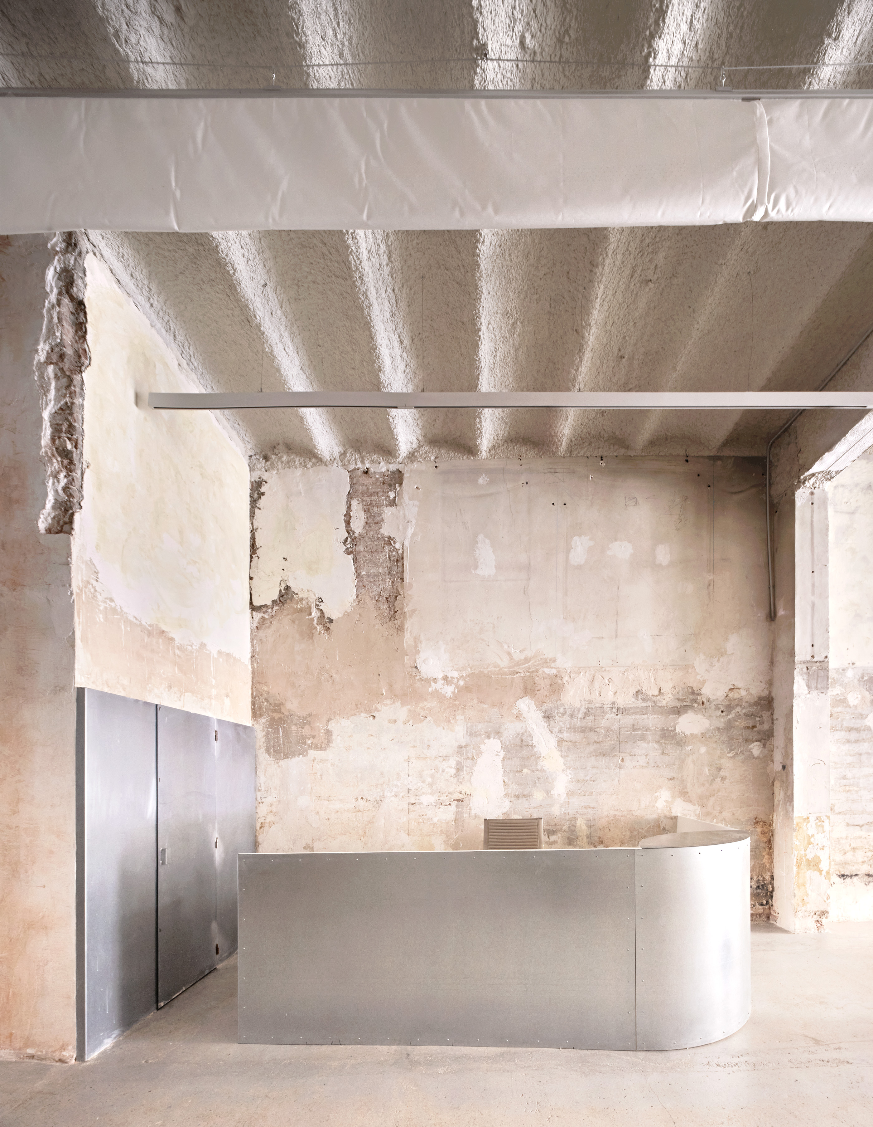 The question of the nature, history, and status of materials is directly related to evolution and survival. All contacts that occur in the world are a form of interaction between materials. In this sense, the aim of this project was to literally strip down the original gallery, removing all hidden architectural elements and exposing every trace of