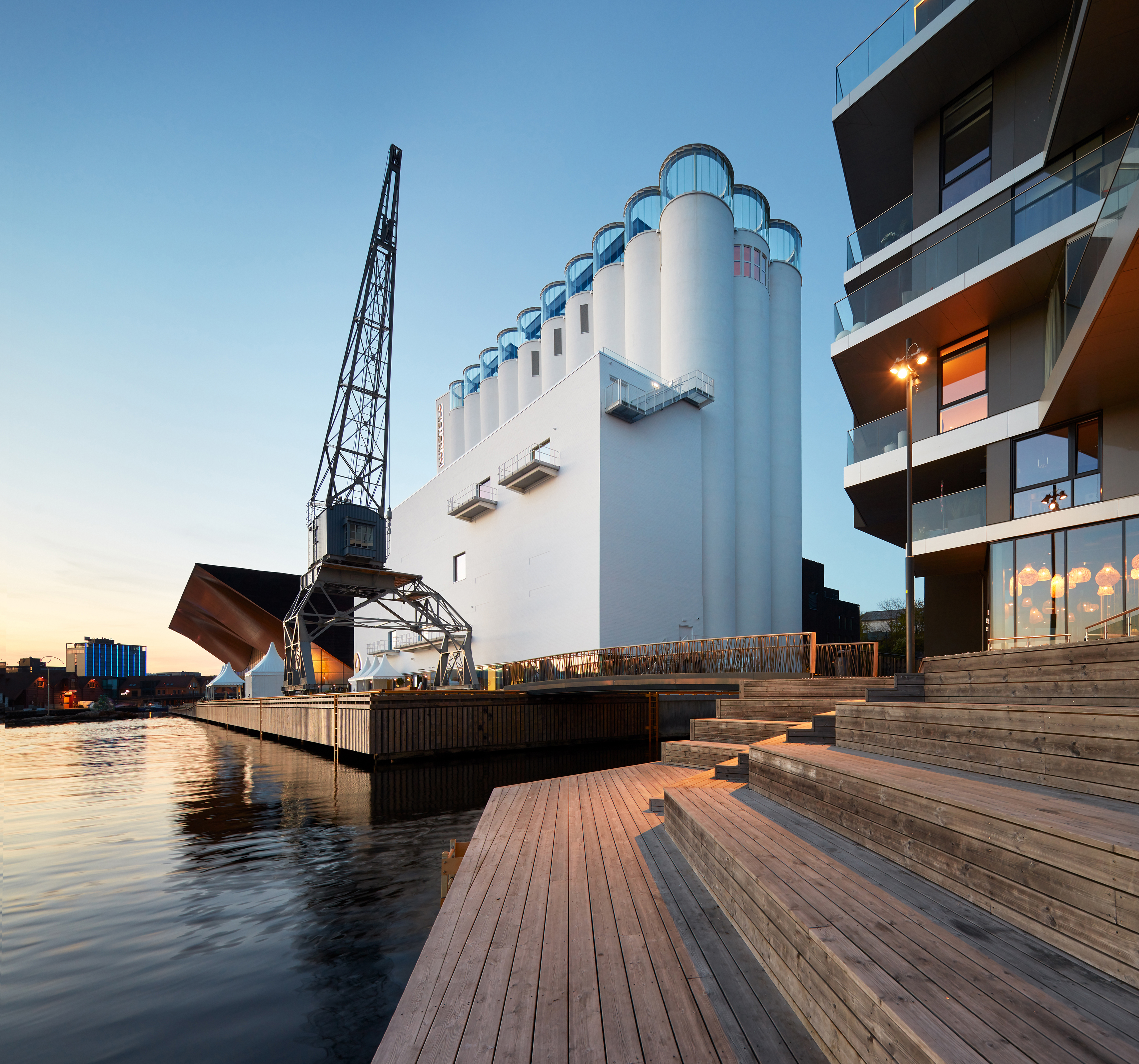 KUNSTSILO forma parte de la apuesta de transformación y regeneración urbana del Puerto Industrial de Odderøya, Kristiansand, Noruega, en un nuevo polo cultural. El proyecto ordena toda una parcela que integra junto a la Ópera de Kilden, la Escuela de Cultura (KNUDEN), la incubadora de arte y el nuevo Museo en un Silo de grano.