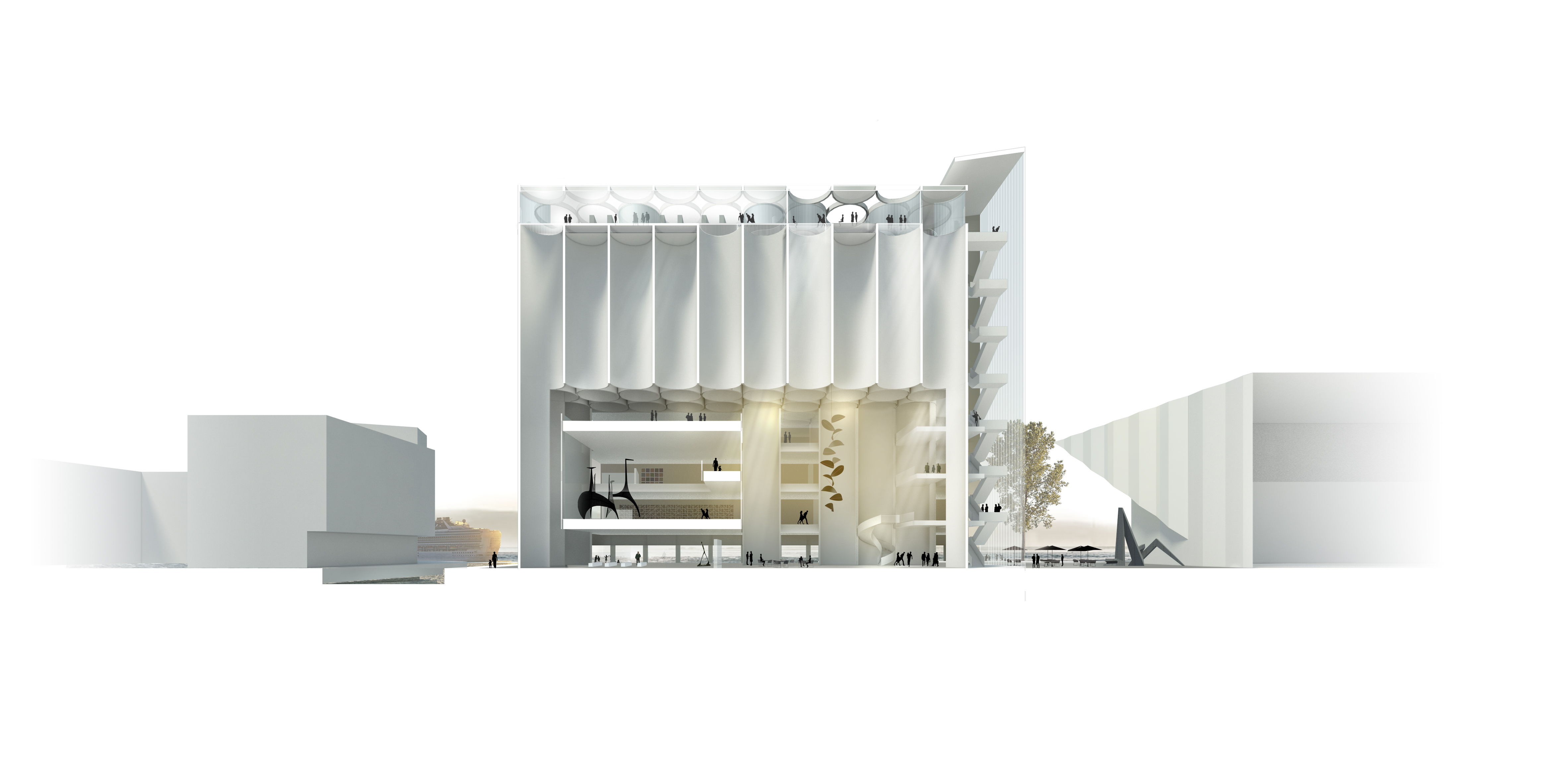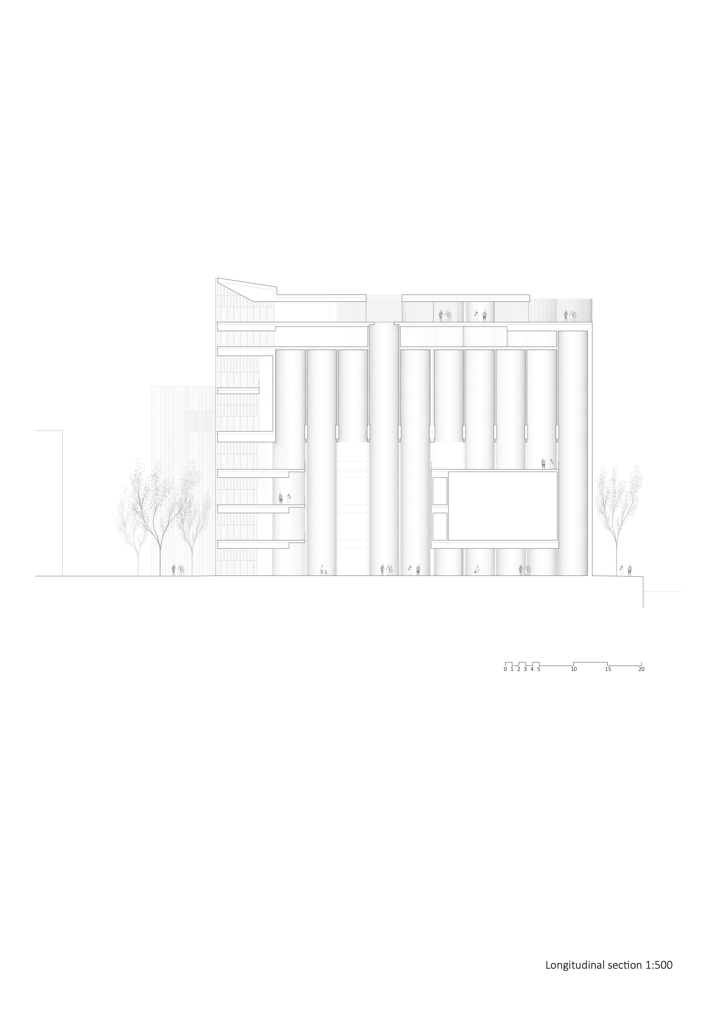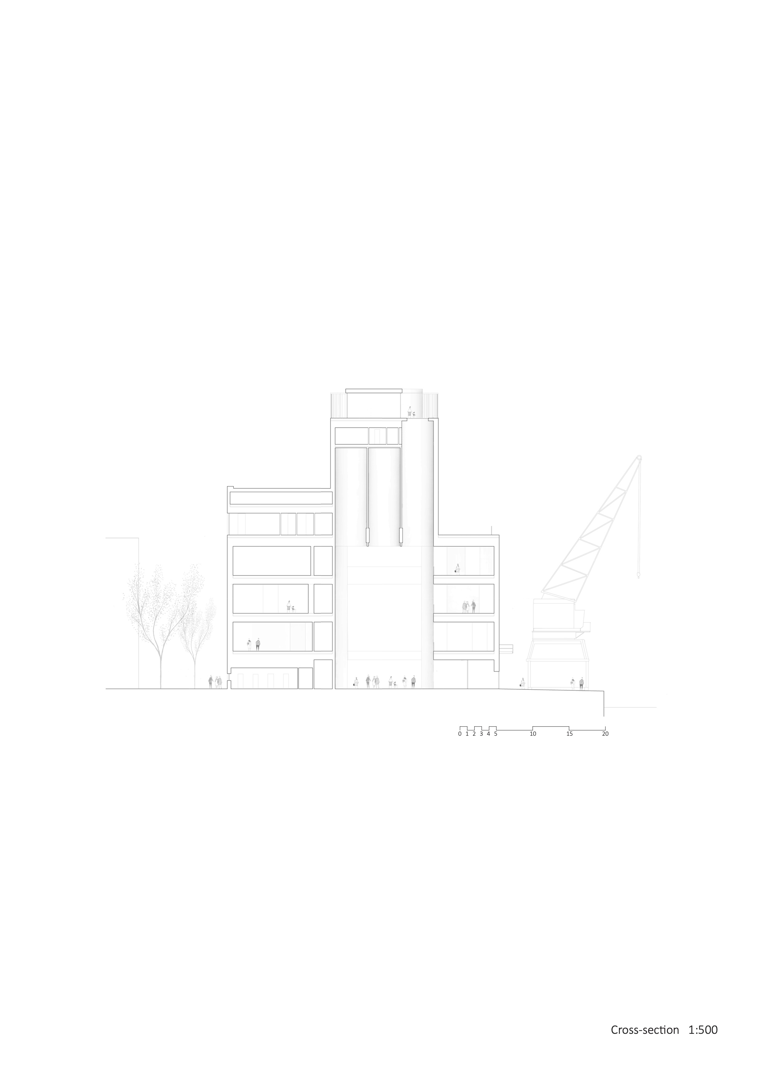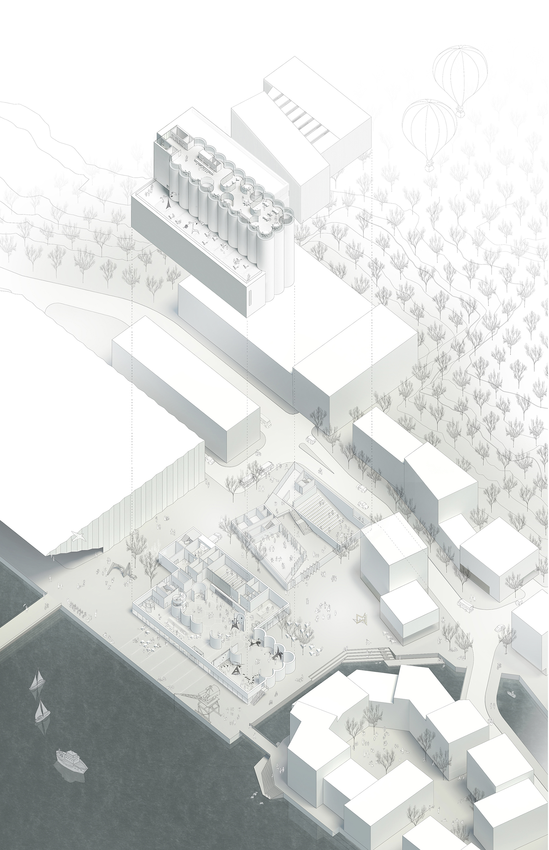 La propuesta preserva y pone en valor la representatividad y memoria histórica del silo. A nivel volumétrico, mediante operaciones muy sutiles y respetuosas, se logra abrir el silo a la vida pública de la ciudad. Para ello es clave la apertura de toda la planta baja frente a la promenade que promueve permeabilidad e inclusión, el aprovechamiento de la terraza en la cubierta de este edificio como plataforma de arte y eventos urbanos, o la adición de una planta transparente sobre la cubierta del silo a manera de mirador público, que integran el museo al tejido urbano, revitalizándolo como espacio cultural accesible y dinámico.