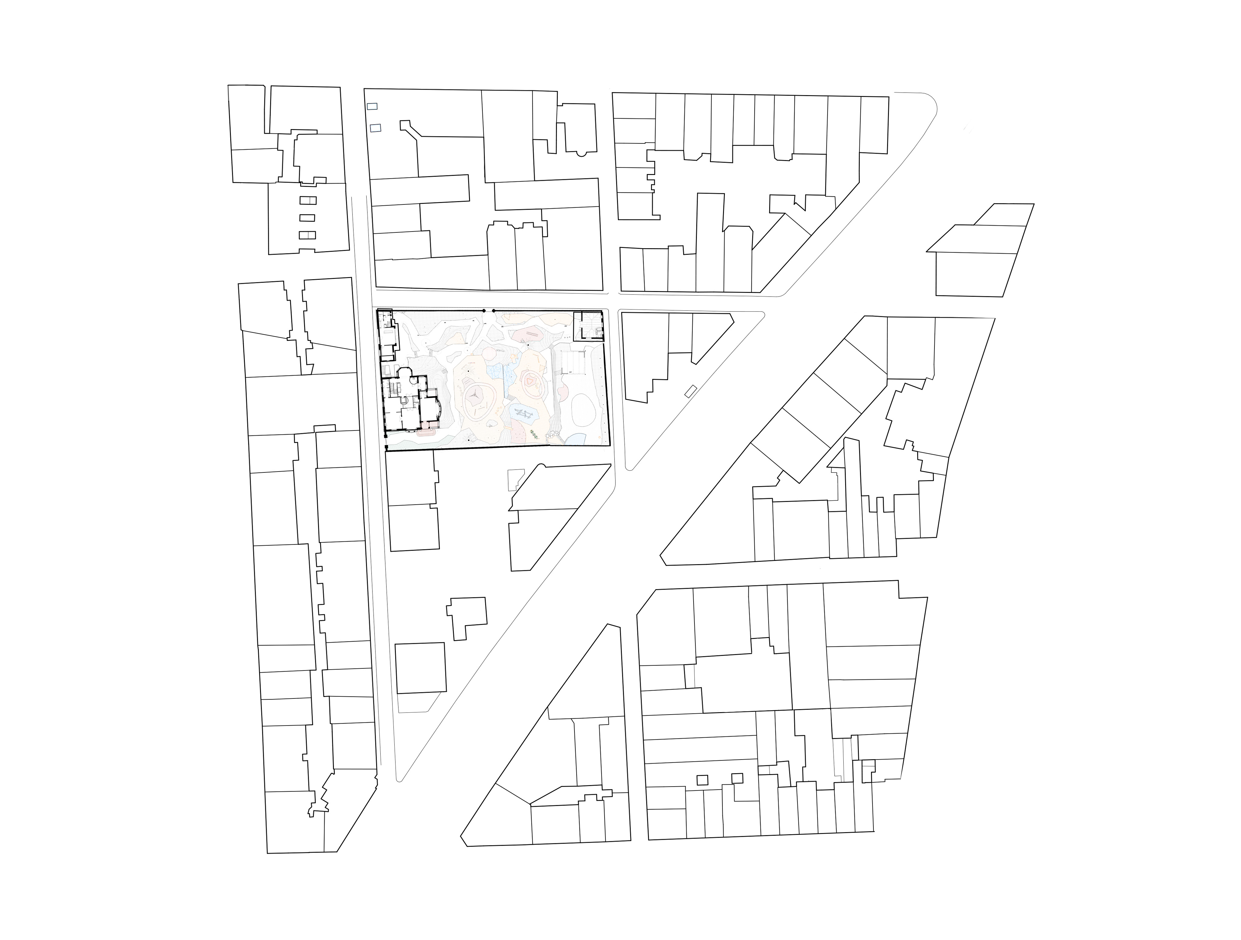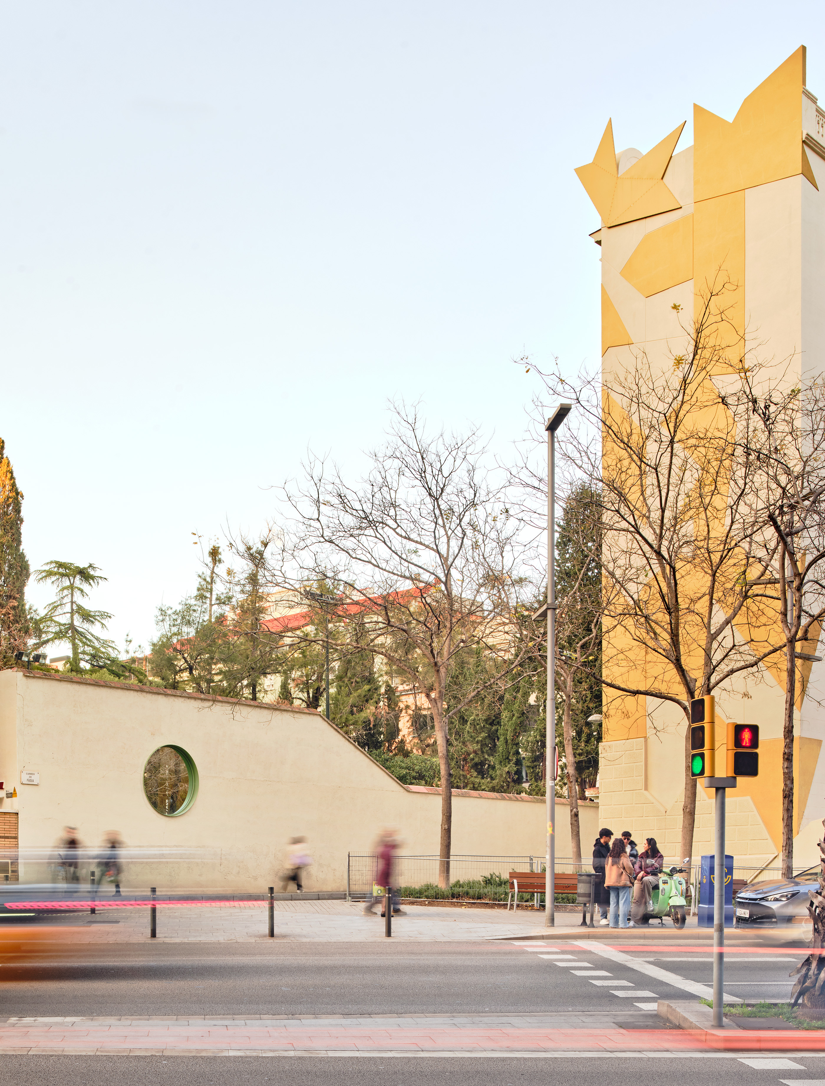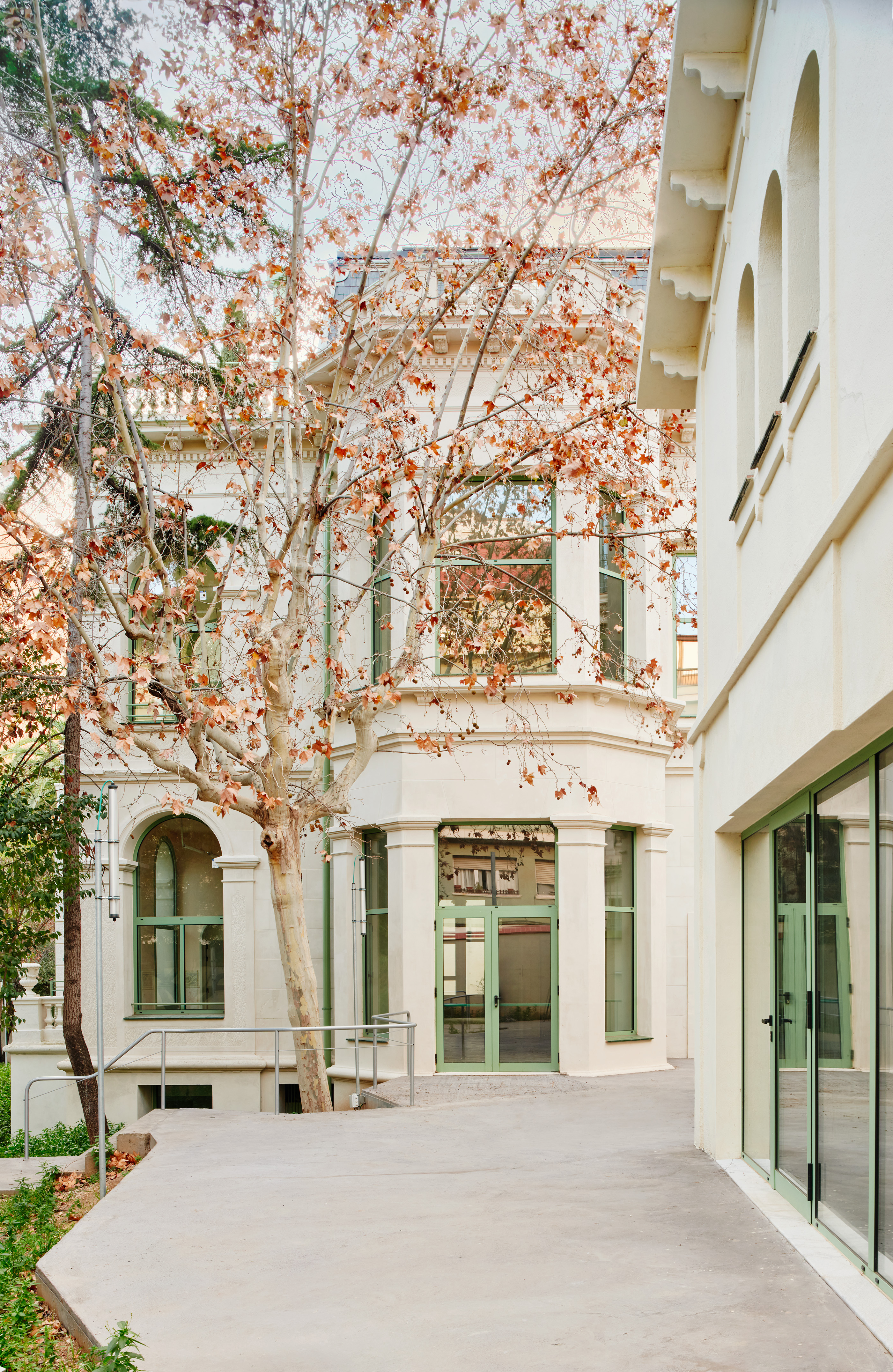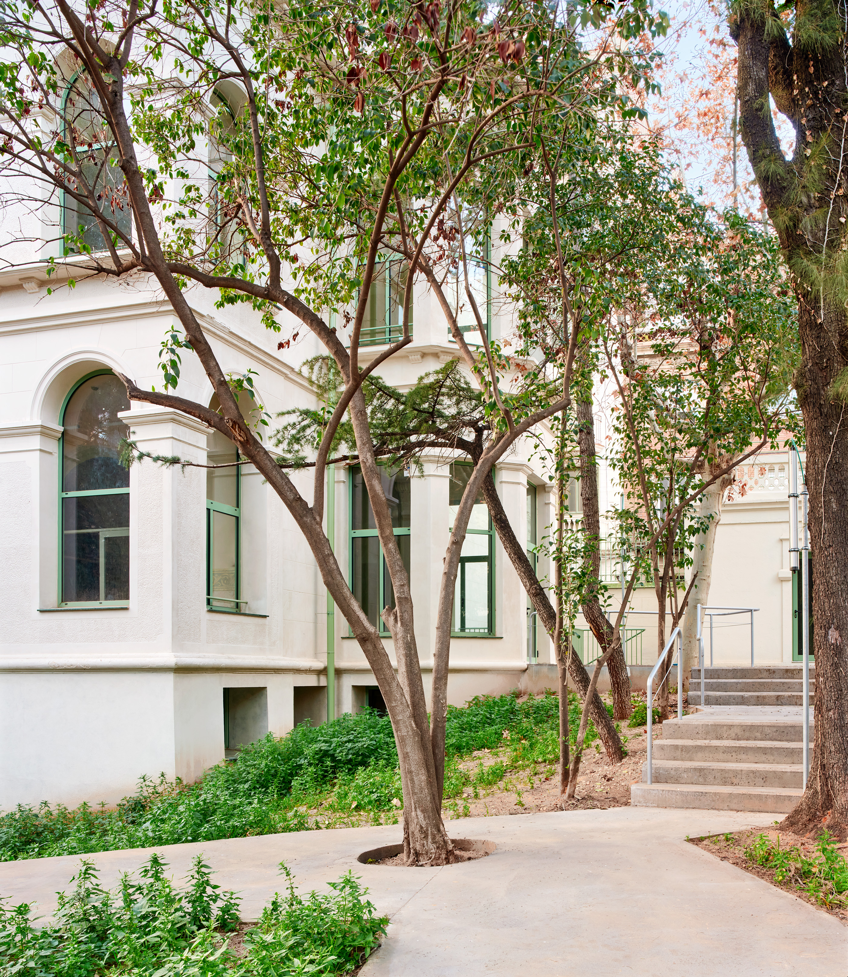 Conservation of urban heritage, Montessori educational typology where the garden is a large built-in playground. Located in Barcelona, Catalonia.