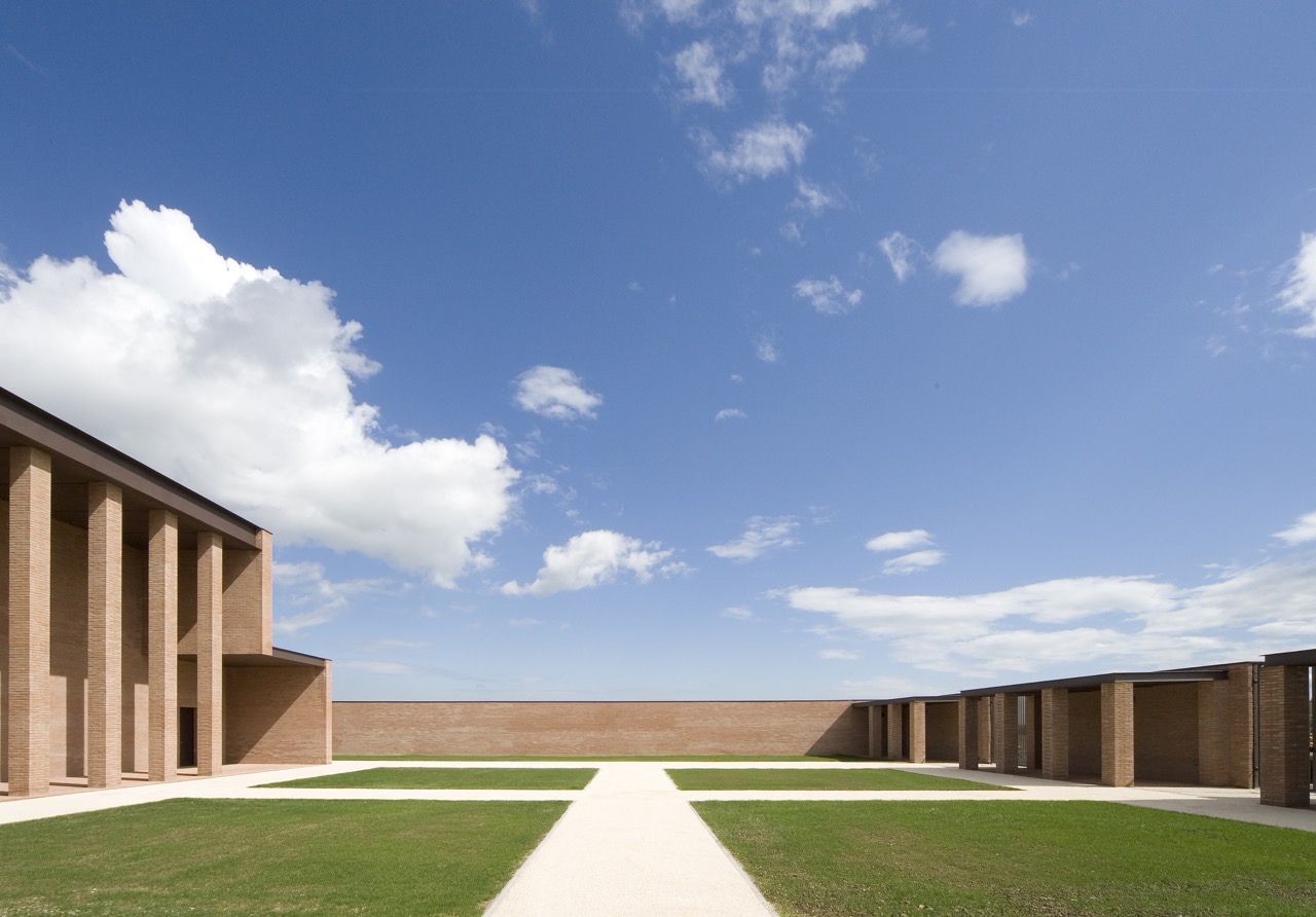 entrance, from the Garden for Sprinkling Ashes, located after the farewell and cremation areas. It is characterized by two similar facades to the north and south, almost two sections that