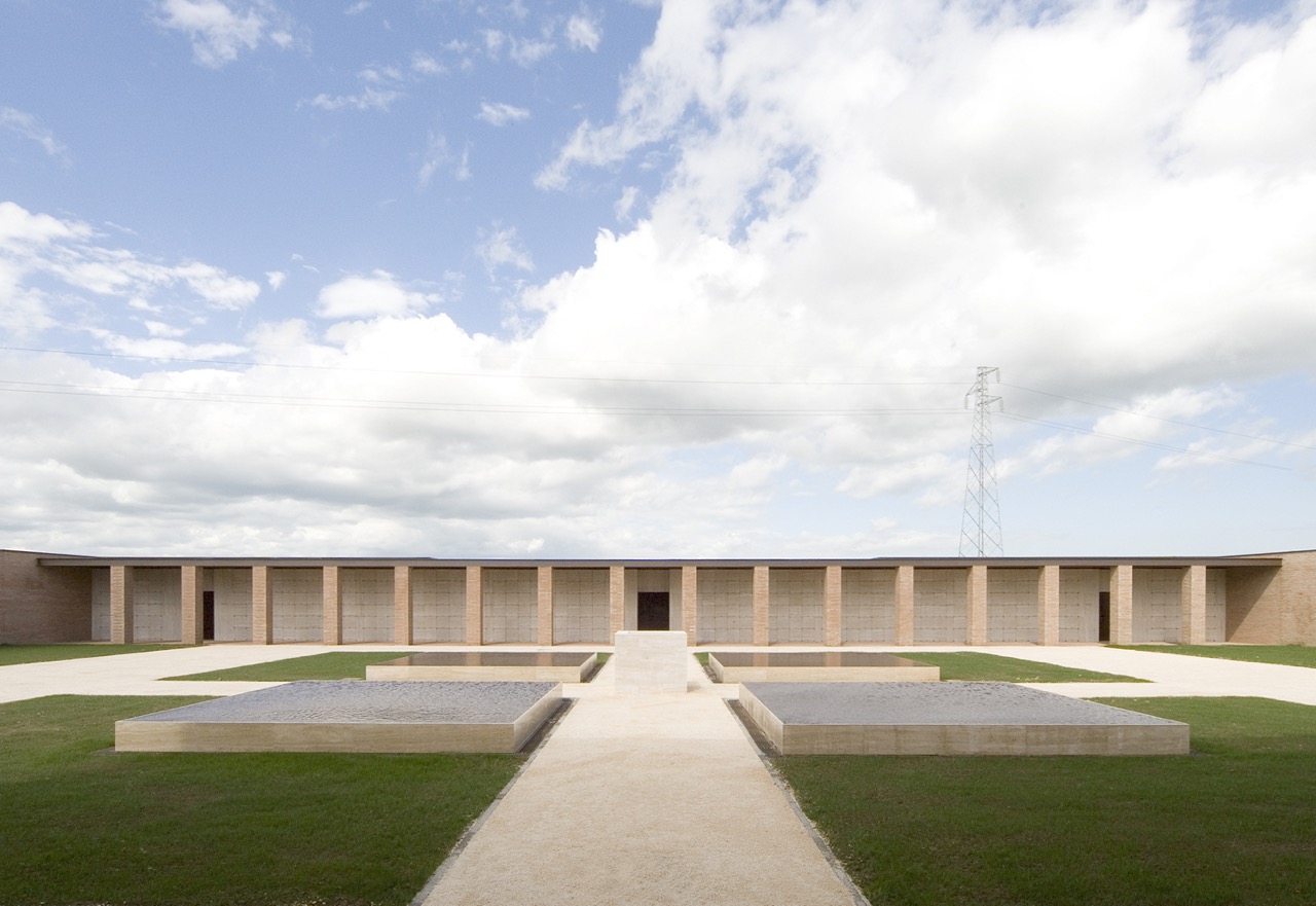 In the form of a large rectangle, positioned next to the existing cemetery, the portico, accessed from the parking area on the narrower side, according to the current use of the existing