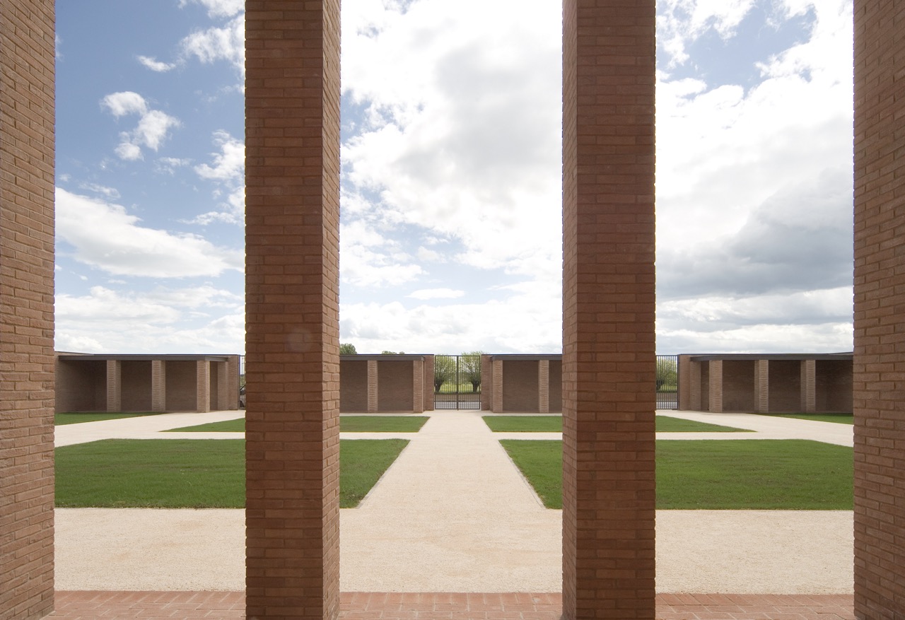The passageway, with its internal ritual, marks the spatial hierarchy of the different moments, which is continually recomposed by the enclosure’s portico, which will be completed over the years with the additions to the Cemetery and will wrap around it in an infinite path.