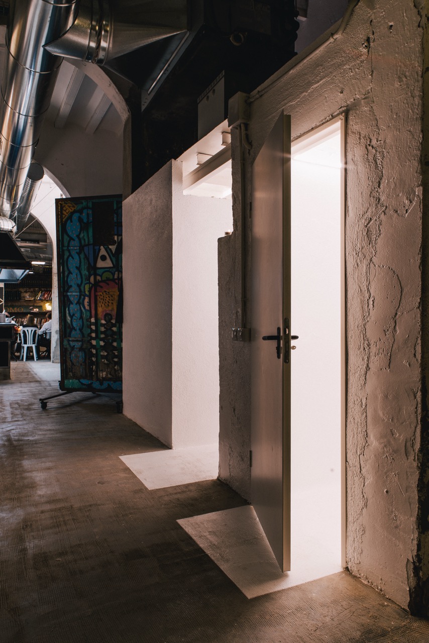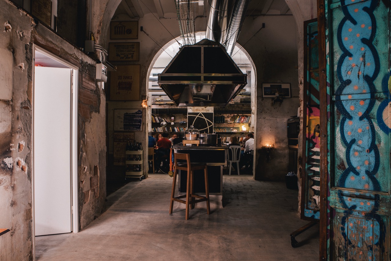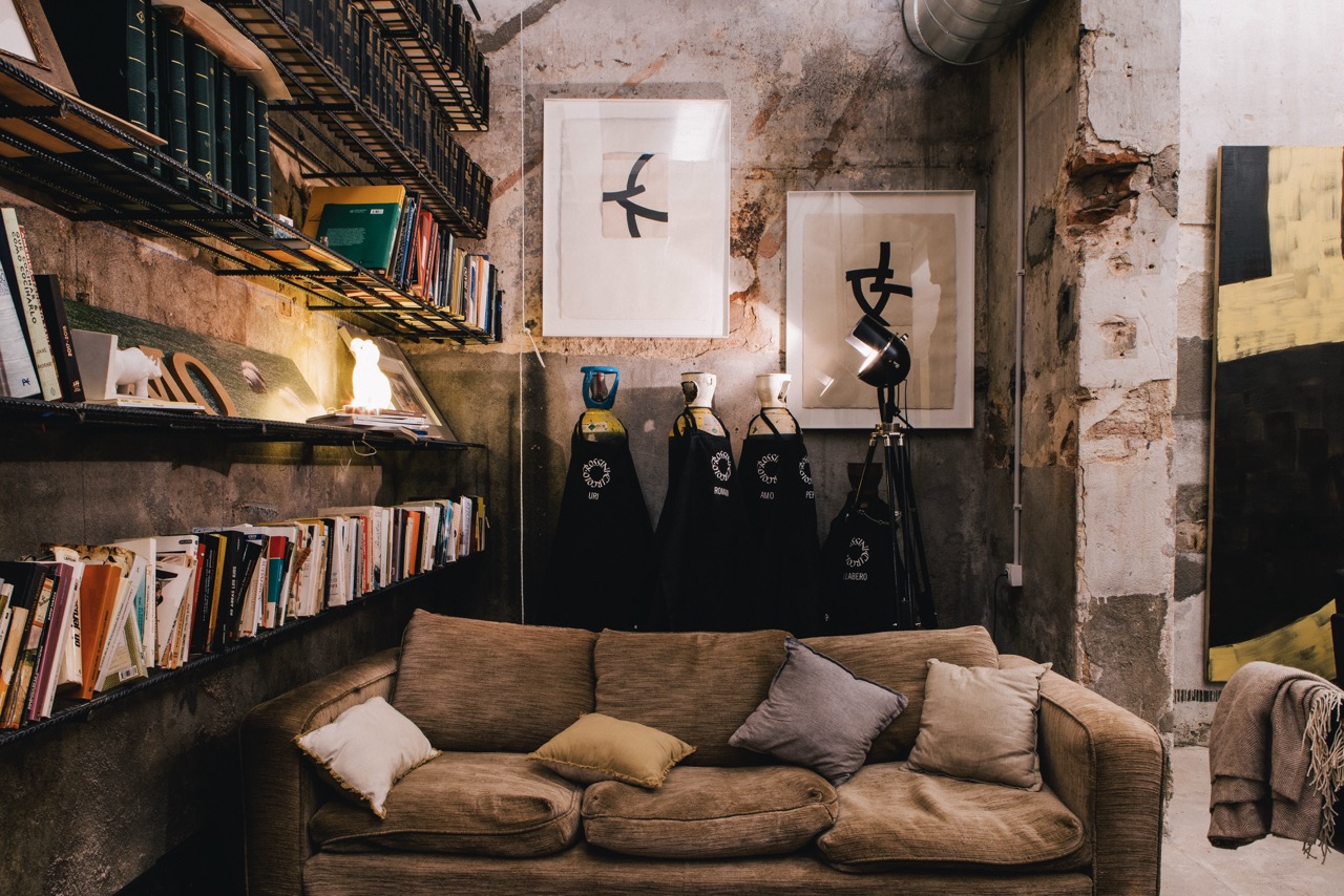 Arquitecto: Proyecto de Stefano Colli con/para YomoAño: 2017Localización: Barrio del Raval, Barcelona.Colaboradores: Lluis Garriga y Gianfranco La Cognata para SCAD ProyectosFotos: Leo García @leocromaInscripción caligráfica: Oriol Miró CanovartMobiliario: Aluminium group y Segmented table de Charles and Ray Eams para Vitra, Lampara Arco de Achille Castiglioni para Flos.
