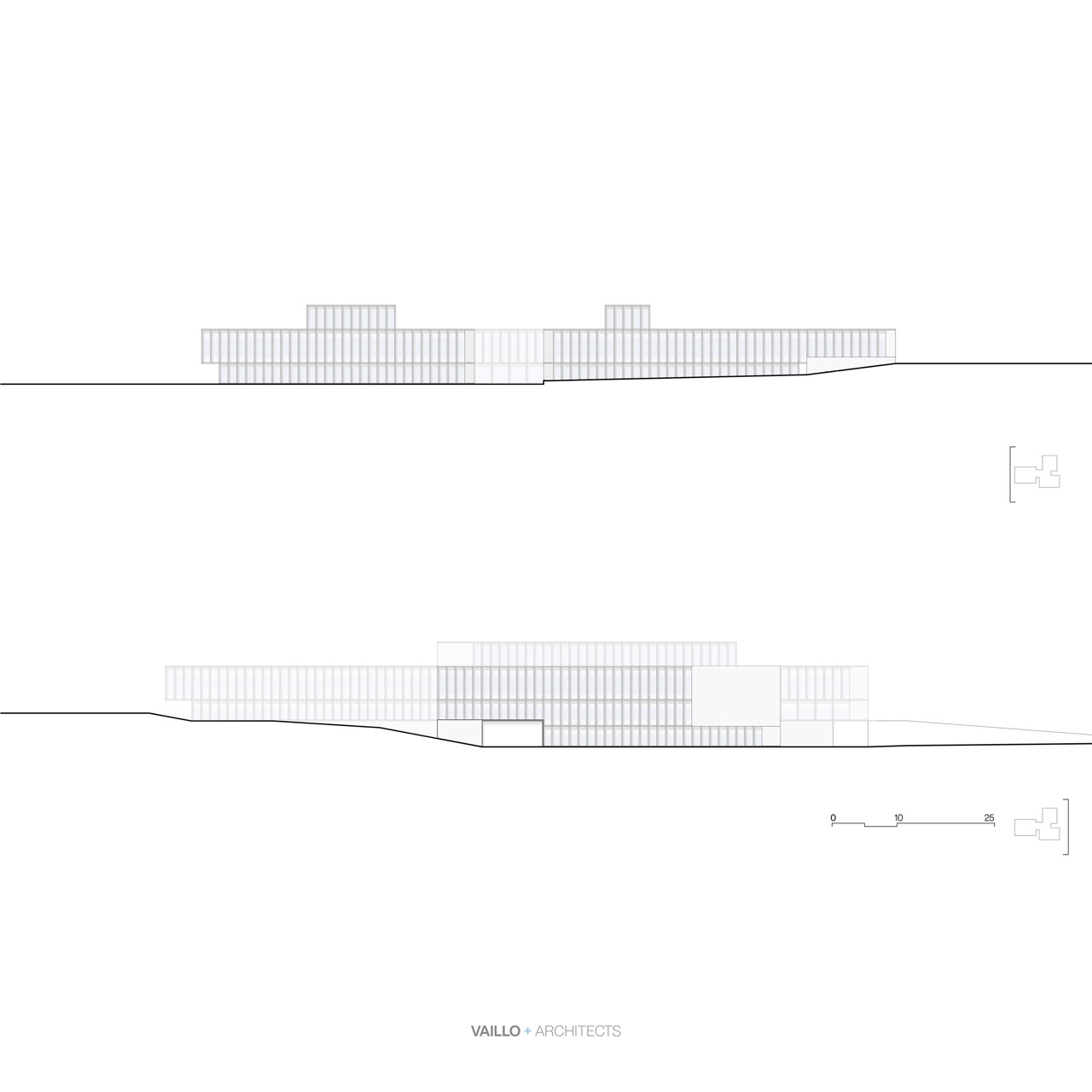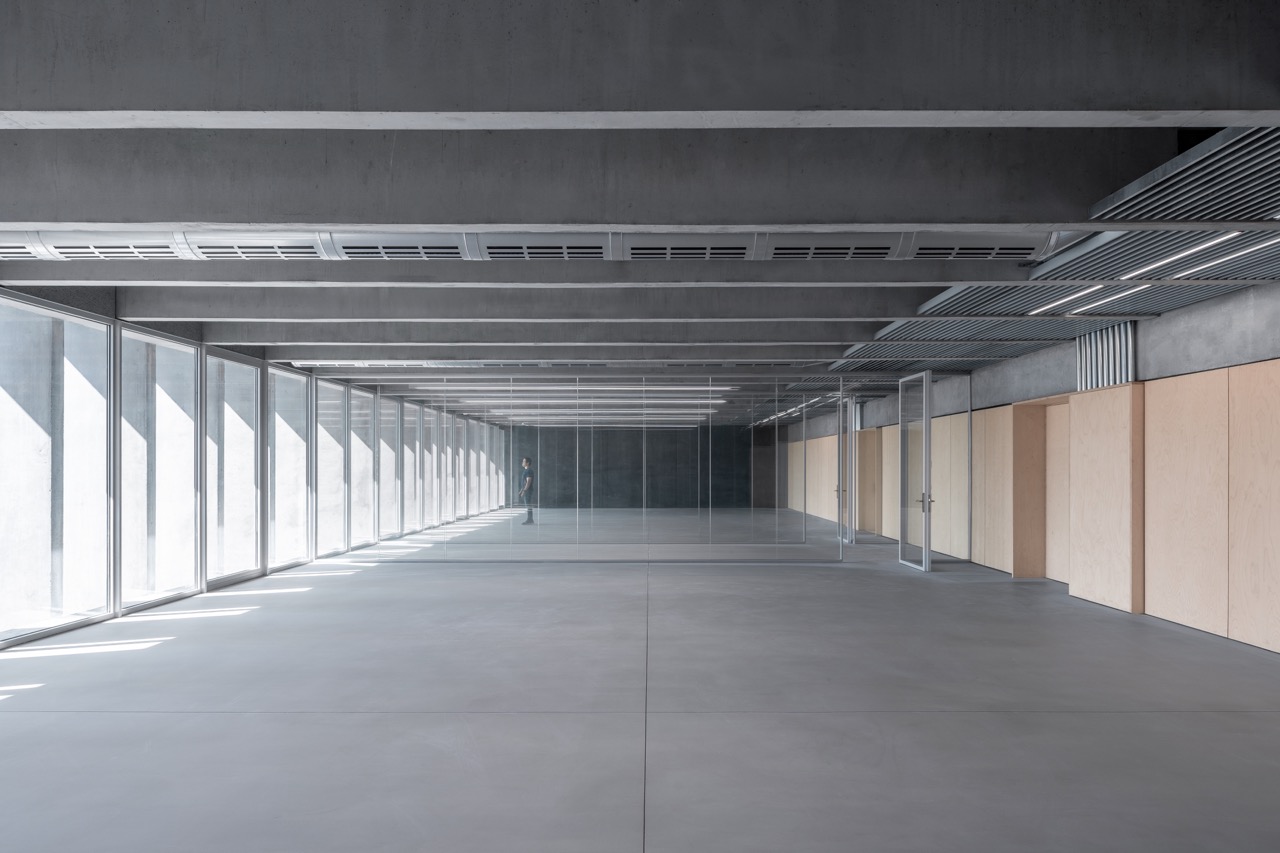 FLEXIBILITY – TIMELESSNESS AND STRUCTURE The proposal aims to offer a flexible and timeless architecture. To achieve this, a public scale closer to urban infrastructure is established. The structure becomes the essential architectural element of the project, capable of organizing the program and defining its image. The building’s image is formed by an exposed, in-situ concrete structure, both interior and exterior, with very slender