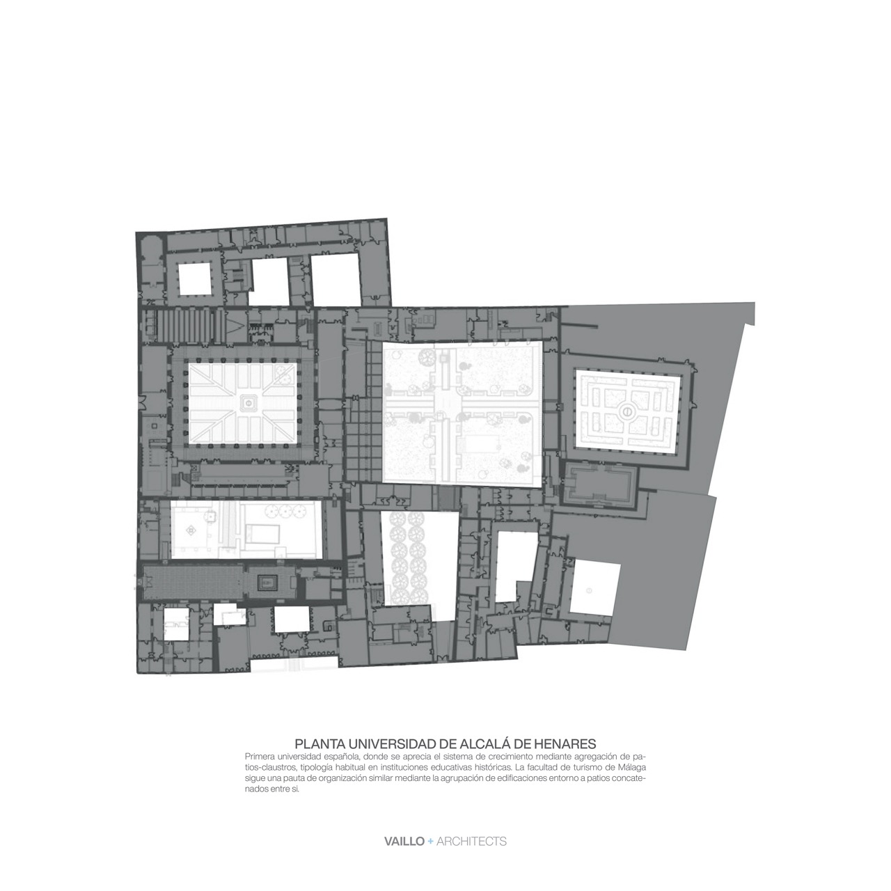 TYPOLOGY and TRADITION Typologically, the building follows the tradition of educational architecture based on a system of aggregating volumes around courtyards, recovering the “cloister” as an organizational system, reminiscent of Mediterranean architecture where the climate favors open and landscaped spaces forming different types of courtyards.
