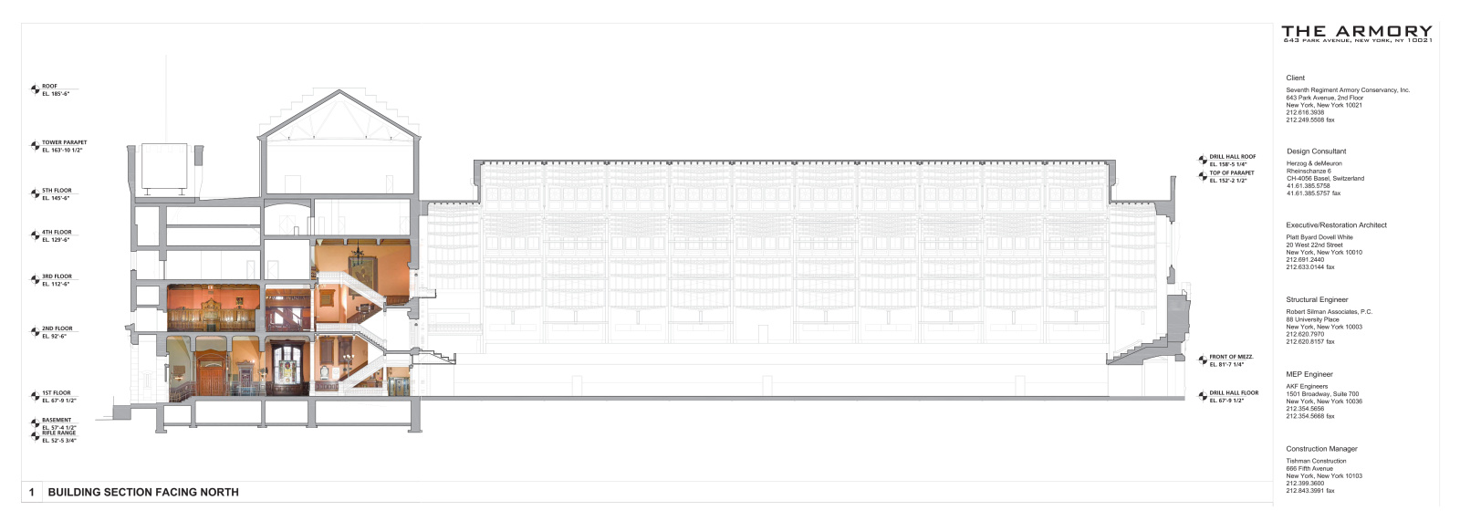 The Park Avenue Armory is a richly layered building of outstanding historical significance, transforming into a contemporary cultural center for New York City. We are treating the Armory like a living monument, preserving it for the future and above all reinventing it. Our method is not preservation in the traditional sense, where the original state of a building is reconstructed to simulate the historical original. Instead, we are enhancing its palpable sense of history by revealing the physical traces the building has produced over time and developing highly specific responses to each space.